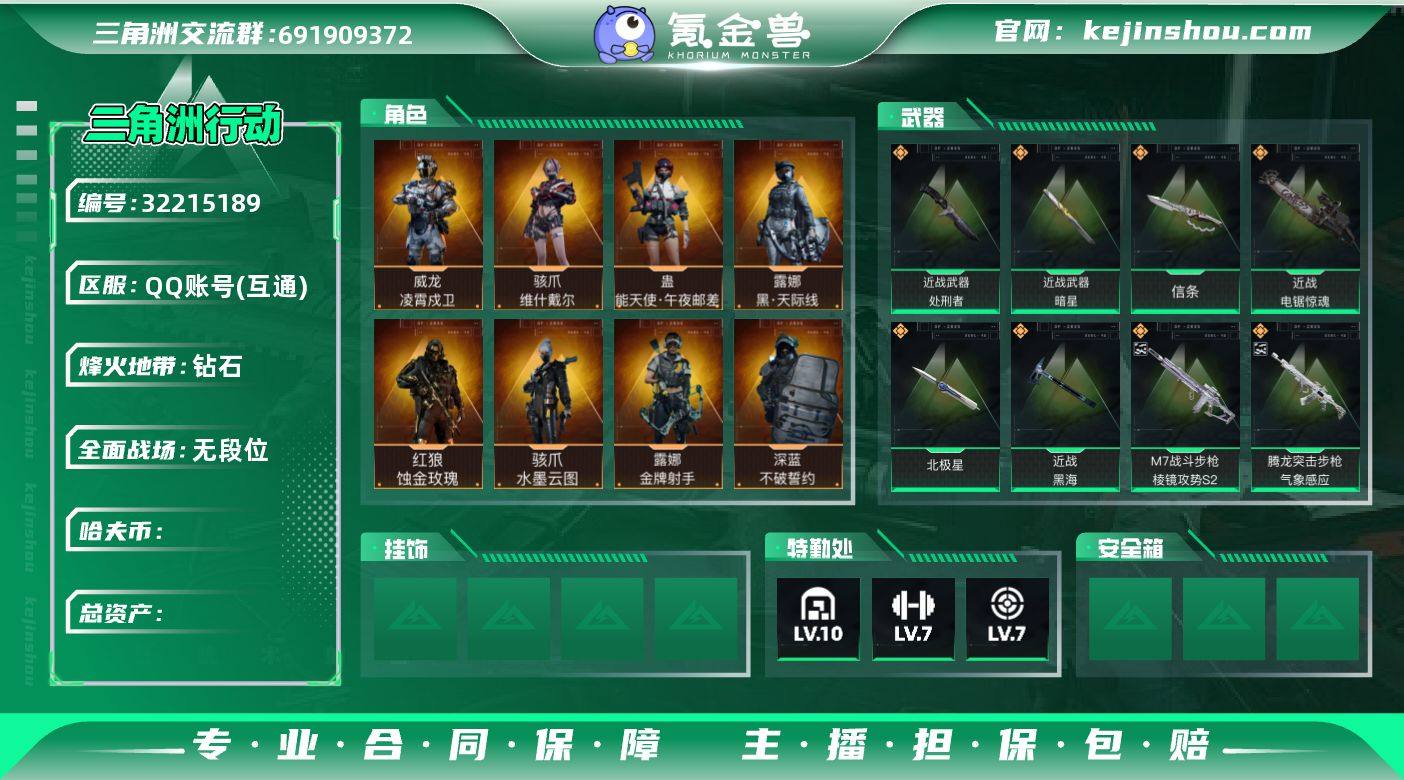 hf14691总资产716m+s8赛季3x3安全箱+黑天际线全套+午夜邮差全套+凌霄戍卫全套+飞虎全套+水墨云图全套+维什戴尔全套+蚀金玫瑰全套+电锯惊魂红狼+暗星全套+信条全套+电锯惊魂全套+北极星全套+黑海全套+处刑者刀+锦绣全套+缄花全套+捞点薯条全套+特斯拉线圈全套+几何结构全套+工艺审判全套+棱镜攻势s2优品b+命运极品b+2优品c+电玩高手优品s+优品c+气象感应优品c+s4s5s6s7s8赛季通行证+烽火等级60+特勤部门等级满级+守信不予+永久包赔