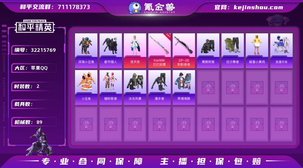 DSH2353【身法号2粉6特 都市猎人 浪漫天命 深海小丑鱼 狂沙舞者 洛天依】苹果手Q-2粉装-6特效枪-58套装-89枪皮-3王牌印记-卓越王牌7星-25093热力值【2粉装】角色-洛天依,角色-异瞳寒姬【6特效枪】Kar98K-巳巳如意[4级],M249-绝对恒星[4级],DP-28-豹影疾电[5级],Mk14-福马献瑞[5级],蜜獾-异瞳寒姬[6级],ACE32-萌骑漫游[4级]【5稀有】小丑鱼,浪漫天命,深海小丑鱼,狂沙舞者,都市猎人【8飞行器】登顶巅峰飞行器,鸡智如我飞行器,异域银装飞行器,炫彩糖果飞行器,绝对恒星飞行器,狂鲨锋刃飞行器,云朵驼驼飞行器,马上有福飞行器【1背包】甜心宝贝背包【134其它衣服和枪皮】魅力单车,福马献瑞,鹰眼刺客,大橘大利,炫彩糖果,角色-紫俏灵猫,SS35特训,冷焰舞者,秘语星愿,薄荷星砂,暖暖麦兜,萌鸡速递,完美偶像,雨过天青,荧光像素,街头潮人,破蛋小黄鸡,漫步者,青涩时光,绿洲幽影,SS36特训,弄潮海豚,SS34特训,街头风暴,书海巡游,青翼流星,狂鲨锋刃,粉黛兰香,长空猛禽,白糯汤圆,琴音绮想,黑色伏地魔,海岛探路者,冰冻风暴,荒原烈焰,雪国风尚,风迹短诗,红釉青花,错位像素,画境星梦,SS37特训,角色-超感刻度,阳光菠萝,马上有钱,角色-甜心蒙太奇,狙击之神,耀粉歌者,竞技名士,王牌教练,午间小调,蓝...