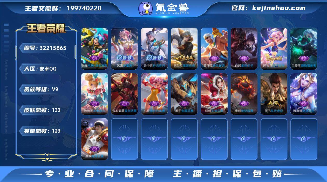 V9 1珍品传说 123英雄 133皮肤 可修改实名 男号