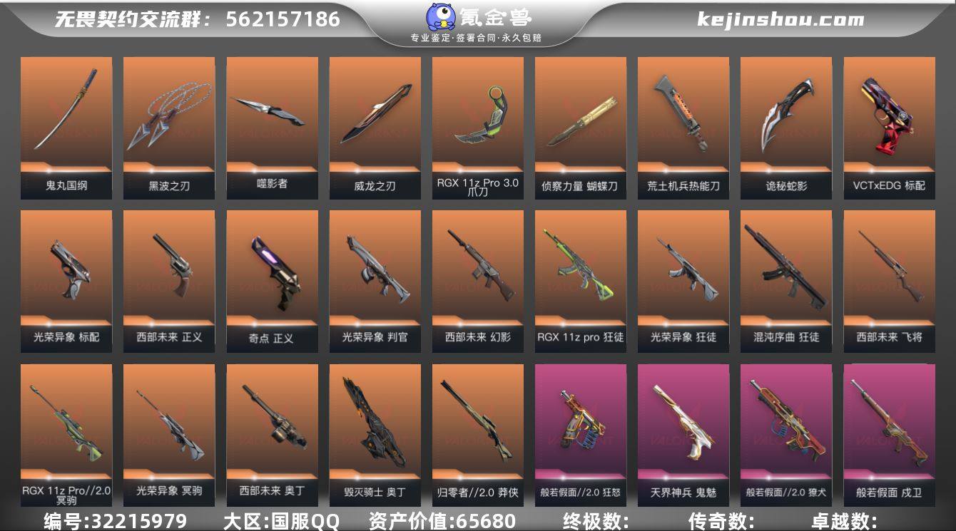 ZMWW583【皮肤价值65680 25英雄 112皮肤 西部未来套装 光荣异象套装 般若套装 25冠军枪皮 奥丁 RGX狂徒 刀皮- 鬼丸 侦察蝴蝶刀 RGX 噬影者 威龙之刃 黑波之刃】游戏等级195-段位:铂金-皮肤价值65680-已用源晶点数1300-英雄25-武器皮肤112 星际猎兵-短剑 2025全球冠军赛-狂徒 阿特斯拉指挥部-甩棍 黑波之刃 毁灭骑士-奥丁 日耀风暴-遗器 掠影-狂徒 光荣异象-标配 光荣异象-狂徒 光荣异象-冥驹 光荣异象-歧途 光荣异象-判官 奇点-正义 RGX-11z-Pro-狂徒 威龙之刃 塑水宗-骇灵 诡秘蛇影-军刀 噬影者-簇刃 掠影-戍卫 天界神兵-鬼魅 西部未来-正义 混沌序曲-狂徒 神圣领域-战刀 VCT-x-EDG-标配 归零者//2.0莽侠 荒土机兵-热能刀 侦察力量-幻影 鬼丸国纲 般若假面//2.0獠犬 般若假面//2.0狂徒 般若假面//2.0战神 般若假面//2.0狂怒 侦察力量-蝴蝶刀 盖亚的复仇-狂徒 RGX-11z-Pro//2.0冥驹 RGX-11z-Pro//3.0爪刀
