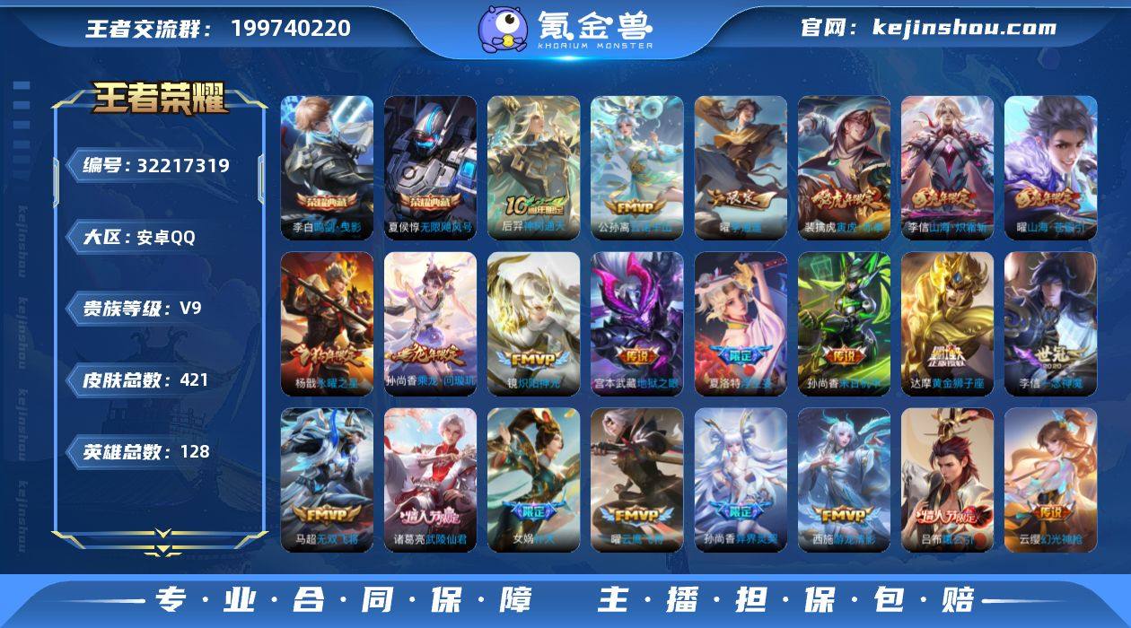 【4966】安卓Q-V9-至尊星耀IV段位-128英雄-421皮肤-2典藏皮肤-36传说-117史诗 【英雄全皮】:孙权全皮,狂铁全皮,敖隐全皮,蒙恬全皮,夏洛特全皮,戈娅全皮,空空儿全皮,影全皮 【荣耀典藏】:夏侯惇无限飓风号,李白鸣剑曳影 【传说皮肤】:后羿神树通天,公孙离云诺千山,云缨幻光神枪,桑启鸣野蒿,吕布曦玄引,孙尚香乘龙问璇玑,夏洛特浮生妄,项羽无限倾心,曜山海苍雷引,李信山海炽霜斩,吕布怒海麟威,马超无双飞将,女娲补天,裴擒虎寅虎赤拳,孙尚香异界灵契,赵云淬星耀世,西施游龙清影,曜李逍遥 ,小乔音你心动,镜炽阳神光,虞姬启明星使,曜云鹰飞将,李信一念神魔,刘备时之恋人,张良黄金白羊座,干将莫邪久胜战神,虞姬云霓雀翎,达摩黄金狮子座,花木兰冠军飞将,后羿黄金射手座,杨戬永曜之星,诸葛亮武陵仙君,貂蝉仲夏夜之梦,孙尚香末日机甲,宫本武藏地狱之眼,孙悟空地狱火 【限定皮肤】:姜子牙天穹之誓,狄仁杰阴阳师,赵云皇家上将,墨子神迹守卫,嬴政优雅恋人,嬴政白昼王子,孙尚香异界灵契,鲁班七号狮舞东方,庄周高山流水,高渐离玩趣恶龙,钟无艳超时空战士,扁鹊奇幻香踪,白起夜都怪侠,芈月幻夜卜梦,吕布猎兽之王,周瑜真爱至上,元歌云间偶戏,元歌无心,夏侯惇朔风刀,甄姬游园惊梦,甄姬落雪兰心,狄仁杰魔术师,狄仁杰万华元夜,达摩星际陆战队,达摩沙漠行僧,项羽海滩派对,项羽无限倾心,老夫子醍醐杖,老夫子航海奇遇记,关羽冰锋战神,程咬金演武夺筹,韩信傲雪梅枪,王昭君午后时光,兰陵王金庭之子,花木兰青春决赛季,花木兰默契交锋,亚瑟潮玩骑士王,孙悟空至尊宝,孙悟空孙行者,牛魔御旌,后羿辉光之辰,后羿圣弓游侠,刘备百相守梦,李元芳云中旅人,虞姬启明星使,钟馗神迹守卫,钟馗驱傩正仪,杨玉环遇见飞天,杨戬永曜之星,杨戬潮玩骑兵,女娲...