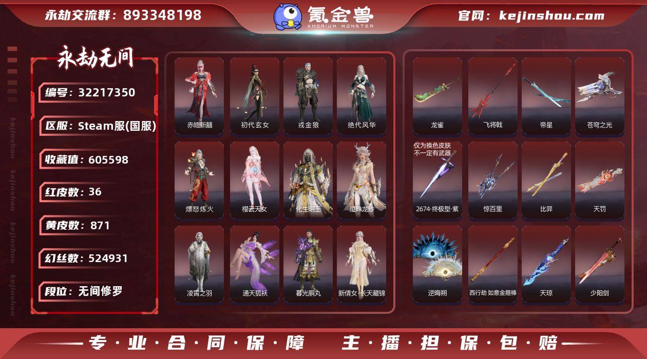 精武魂+提步+火男+冰女+胡桃+魏轻+三娘泳装+炎烈珠+初代机+绿野守护+杨戬+神君+应龙号+荆魂+珥冰+三娃葫芦+凶虎+揽九天!!【steam国服】红皮数: 35金皮数量: 767 红皮:樱云天女 执明神君 监兵凶神 赤皓新禧 星辉魔纱 凌霄之羽 流金晓锦 通天狐袄 夜魅游莹 泣珠龙纱 长天藏锦 暮光胴丸 绝代风华 熛怒烈火 戎金狼 初代玄女 墨离 红武:苍穹之光 惊百里 比羿 帝星 天罚 飞将戟 天琼 逆晦朔 如意金箍棒 少阳剑 烈阳 狼主 龙雀 冰魄 毕方 狂龙 可换绑 段位因赛季原因发生变化,以上号为准