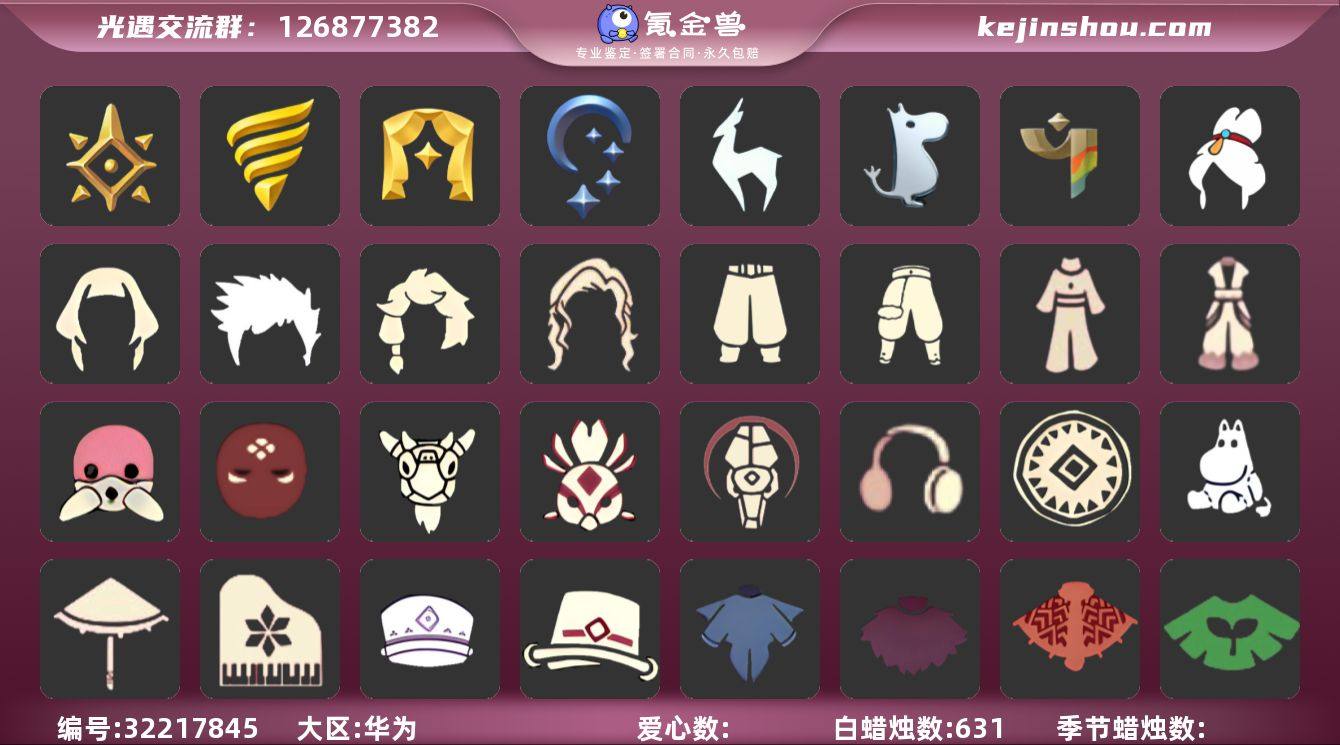 【礼包】活力海牛礼包,兔子鞋(兔子拖鞋),姆明饰品套装(姆明尾巴),南瓜(冥龙南瓜),巫师(巫师帽),绊爱(绊爱斗篷)(绊爱礼包),橘子(大橘大利),雪花(雪花发夹),贝壳(贝壳发饰),兔子(玉兔头饰)(玉兔发饰)(兔子发饰),九色鹿角(神鹿祝福头饰)(神鹿祝福礼包),枯角(巫树犄角),创始人(创始人斗篷),围巾(小王子斗篷)(小王子围巾),蝙蝠套(蝙蝠斗篷)(南瓜头),蜘蛛斗(蛛丝斗篷)(蛛网斗篷),透明蛛丝(透明蜘蛛斗),瑞雪(瑞雪斗篷)(暖冬瑞雪),秋千(情人秋千),小狗周年发饰(小狗周年头饰)