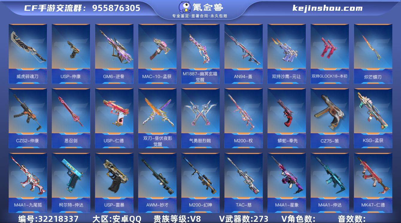 ✨高质量爆破!拉丝C4+王者大炮+拉丝王魄+王势+无双奉先+星象+权+仲达+九尾狐+仁德+妙才+多COP+5女团角色✨『135级-显血戒-VIP8-347V』奉先套/仁德套/文远套/仲康套/ 【王者武器】:/巴雷特-雷霆王者/王者之魄-HeartShot/王者之势/王者之影-HeartShot/王者之心/王者之兽/王者之尊/王者之神-冰霜奇迹/王者之狱/王者之业-冰霜奇迹/王者之蝶/M12S-雷霆王者/王者之霆/王者之竞雷套/王者之翼闪光弹-HeartShot/王者之翼烟雾弹-HeartShot/王者之势闪光弹-HeartShot/王者之影烟雾弹-HeartShot*5/王者之心烟雾弹-HeartShot/王者之势烟雾弹-HeartShot/ 【热门武器】:/AK47-奉先-无双/M4A1-星象/M200-权/MK47-仁德/M4A1-仲达/M4A1-九尾狐/SCAR-文远-过载/AWM-妙才/TAC-慈/CZS2-仲康/M200-幻神/GM6-逆骨/KSG-孟获/AN94-盖/SCAR-探星者-星海遨游/MK47-鼓龙/M1887-幽冥玄喵觉醒/ 【副武器】:/COP 357-雷霆*2/COP 357-堕天神/COP 357-安琪拉*2/USP-仲康/双管猎枪-文远-过载/蟒蛇-奉先/USP-仁德/双持沙鹰-元让/双持GLOCK18-本初/柯尔特-仲达/CZ75-策/MAC-10-孟获/USP-雷暴 【近战】:/威虎碎魂刀/虎贲钩镰刀-过载/方天画戟/激昂霸王枪/雌雄双股剑/气勇胆烈戟*2/思召剑/双刃-昼伏夜影觉醒/炽芒蝶刃*2/ 【角色】:/晴雅/雾萌萌/云悠悠/岚兮儿/虹儿/步练师/炽天使-X/杨玉凝-X/零-新生/ 【其他】:/C4-HeartShot/9语音卡/13音效卡/5消灭音效/狙击枪线-诸神黄昏/ 截图展示段位不代表实际段位 如赛季更新等不可抗拒因素发生变化、时限道具不保证所剩时间