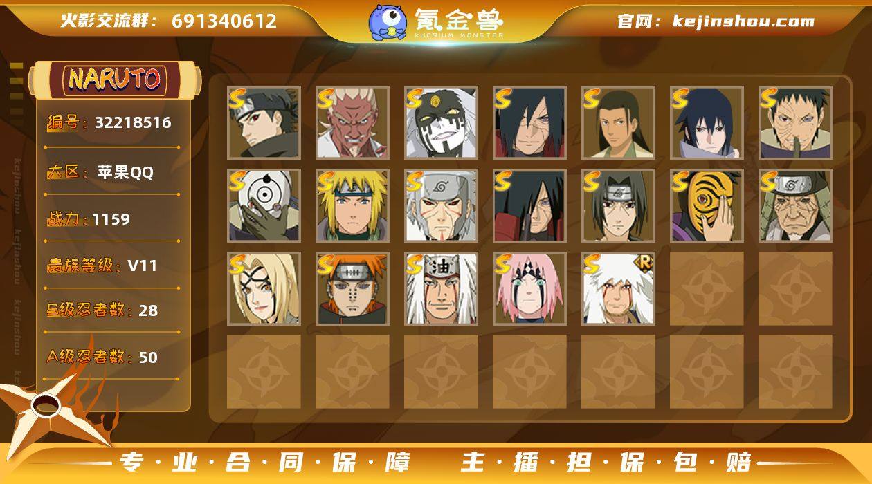 [17413733]V11 28S忍 50A忍 21通灵 1159.8W战力 可二次 可修改实名 【S级忍者】宇智波止水「须佐能乎」,艾「忍界大战」,大筒木桃式,宇智波斑「秽土转生·解」,千手柱间·木叶创立,宇智波佐助「永恒万花筒」,神秘面具男 「红夜之刃」,春野樱 「忍界大战」,宇智波带土 「忍界大战」,自来也 「舞之豪杰」,旗木卡卡西「须佐能乎」,大筒木舍人 「最终章」,自来也 「传说中的三忍」,漩涡鸣人 「暴怒·第六尾」,波风水门「九喇嘛连结」,漩涡鸣人·宇智波佐助,宇智波斑「秽土转生」,宇智波斑「白面具」,千手扉间「秽土转生」,纲手「百豪」,猿飞日斩「秽土转生」,神秘面具男,宇智波鼬 「须佐能乎」,佩恩「天道」,波风水门,自来也 【通灵兽】熊猫
