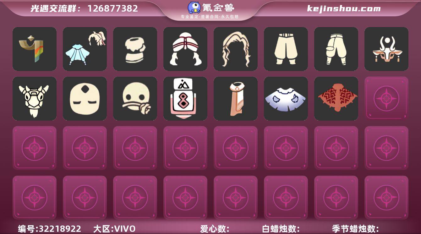"资源:蜡烛115 爱心26 红烛4 翼8 已毕业地图:无 毕业季节:彩染季 归巢季卡 毕业季节物品:彩染围巾斗篷 辉光羚羊面具 稀有礼包:雪人暖靴 青衫落拓礼包 蝴蝶与花 橘子发饰 心心相印头饰 金鳞耳坠 热门裤子:武士裤 搓澡巾 小丑服 探险燕尾礼 热门面具:矮人面具 盲僧眼罩 向导面具 黑脸 玫瑰花面具 热门发型:正太头 公主头 郡主头 虚荣 圆环发辫 樱花头 热门头饰:花环 蓝色音乐节 热门斗篷:五星斗篷 白金斗篷 小浣熊斗篷 史力奇斗篷 镂空三条斗篷 镂空斗篷 彩染季围巾斗篷 热门背饰:相机 星星灯"
