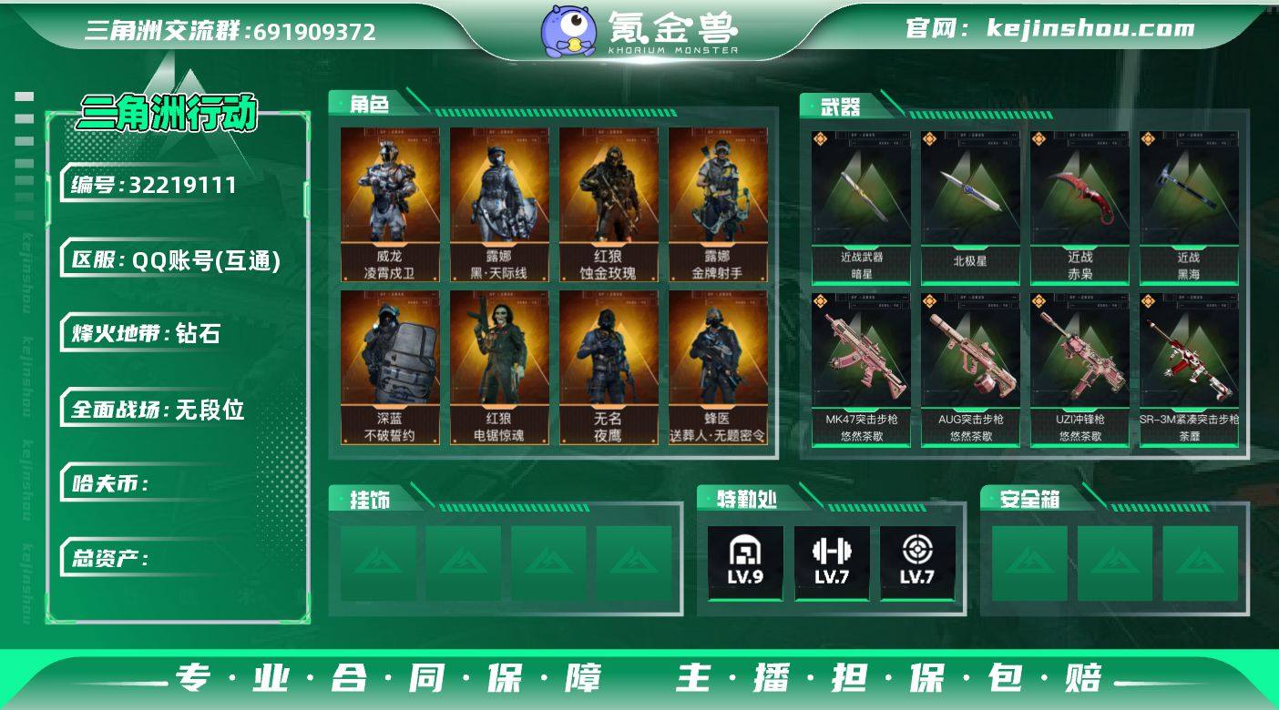 hf14704总资产263m纯币47m+s8赛季3x3安全箱+三角卷20960+黑天际线全套+凌霄戍卫全套+蚀金玫瑰全套+电锯惊魂红狼+暗星全套+北极星全套+黑海全套+赤枭刀+锦绣全套+缄花全套+茶靡全套+悠然茶歇全套+鹅鸭杀全套+捞点薯条全套+特斯拉线圈全套+s4s5s6s7赛季通行证+烽火等级60+特勤部门等级可以+守信不予+永久包赔