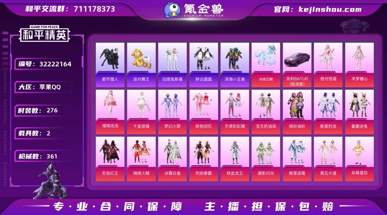 【战神框巡查衣金鞋都市男神21粉装11特效枪2载具小熊背包猫包 秒换绑不用等】 苹果Q区-126260热力值-历史最高段位:无敌战神-276套装-361枪皮 【2载具】 宾利BATTUR(极速紫) 冰绡玉鳞【10稀有】 都市猎人 派对舞王(金靴子) 巡查衣 派对舞王 红熊茄茄(权威小潘茄) 萌熊伴侣背包(小熊背包) 百万伏待背包(猫包) AWM-黄金龙骨 AKM-百万伏特【21粉装】 梦幻火箭 宝贝奶油派 天使彩虹糖 缤纷油彩(猪脸妹) 童趣迷兔 冰霜白皇 傲雪凌霜 粉色回忆 绝对恒星 新星烈龙 炙焰红王 烈焰拳霸 铁血龙王 碧影闪光 第五大道 呆萌星弥 未来歌姬 锦绣火鲤 角色-樱桃泡泡 角色-羊梦糖心 角色-千金淑猫【11特效枪】 M416-心之恋语(7级) AKM-炫紫旋律(7级) M249-绝对恒星(6级) UMP45-恐龙拽拽(7级) SCAR-L-童趣迷兔(7级) Vector-红伞翩翩(7级) P90-粉樱探戈(7级) SVD-月影灵韵(7级) Kar98K-巳巳如意(5级) DP-28-豹影疾电(5级) SCAR-L-魔童闹海 哪吒(3级)【289热门】 浪漫天命 雪山精英(老6服) 潮萌小黄鸭 鹰眼刺客 海洋之心 软萌银虎 机械英豪 破蛋小黄鸡 激萌罗小黑 小丑鱼 迅捷狂鲨 深海小丑鱼 浪漫波比 胖达圆圆 暗夜契约 暗影哥特(红眼罩) 极速红龙 团圆交子 瑞龙福将 纯白誓言 狂沙舞者 缤纷焰火 白色伏地魔 SS9特训 SS8特训 SS6特训 SS27特训 SS26特训 SS25特训 SS24特训 SS23特训 SS22特训 SS10特训 SKS-怪兽之王 Mk47-洛神天依 Mini14-梦幻火箭 M762-乌木金纹 M762-橘柚倾心 AWM-不夜海上花 AKM-缤纷海域 M416-乌木金纹 GROZA-乌木金纹 SCAR-L-玉兔迎春 GROZA-田园牧歌 GROZA-恐龙拽拽 M762-天降萌叽 Mk47-乌木金纹 UZI-娇憨猪猪 M416-夜灯 S12K-垂柳戏鸭 M249-彩虹符号 MG3-幻世战舞者 AKM-虎虎生威
