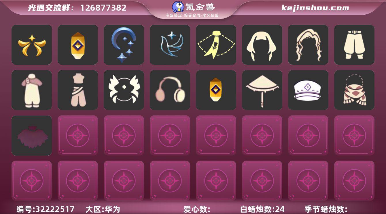 [17321352]华为 手机账号 1珍稀物品 4毕业季 3毕业图 24蜡烛 【珍稀物品】透明蝶翼斗 【季节已毕业】青鸟季,欧若拉季(欧若拉),追忆季,夜行季 【完成地图】雨林,霞谷,墓土(暮土) 【礼包】巫师(巫师帽),橘子(大橘大利),星月头饰(星月头冠),鹿角(圣诞鹿角),瑞雪(瑞雪斗篷)(暖冬瑞雪),白绒金(白雪斗篷) 【裤子】蓝绿裤(高领舞服),武士裤,背带裤 【面具】夜行毕业面具(棕熊面具) 【面饰】青鸟毕业面饰(青鸟面饰),红耳机 【项链】围巾(肩带) 【发型】留辫蘑菇头,虚荣,若笠(箬笠) 【头饰】平顶帽 【斗篷】粉红绒毛斗篷(绒毛斗篷),青鸟毕业斗篷(青鸟斗篷),海洋斗 【配饰】鲲灯(追忆之书),雨伞