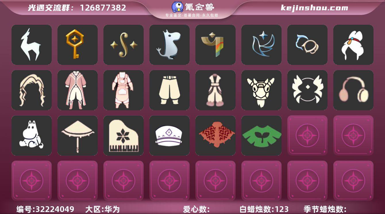 [17452456]华为 手机账号 7毕业季 1毕业图 123蜡烛 【季节已毕业】青鸟季,双星季,九色鹿(九色鹿季),筑巢季,二重奏季,姆明季,彩染季 【完成地图】晨岛 【礼包】青衫落拓礼包,线框斗篷礼包(周年线框斗篷),龙鳞束身长袍,兔子鞋(兔子拖鞋),新年裤(瑞气服饰),姆明饰品套装(姆明尾巴),绊爱(绊爱斗篷)(绊爱礼包),橘子(大橘大利),兔子(玉兔头饰)(玉兔发饰)(兔子发饰),九色鹿角(神鹿祝福头饰)(神鹿祝福礼包),日光耳环,鹿角(圣诞鹿角),创始人(创始人斗篷),星球斗(星球夹克),妮妮斗篷(姆明妈妈手作斗篷)(姆妈手作斗篷礼包),福娃(福娃礼包)(春之日礼包)(铜钱斗),瑞雪(瑞雪斗篷)(暖冬瑞雪),白绒金(白雪斗篷),衔福献瑞礼包(衔福献瑞斗篷),吉他(音韵吉他)(白吉他),红伞(瑞气纸伞),献瑞折扇礼包,秋千(情人秋千),音乐桌(网易云留声机) 【裤子】筑巢季·裤子(设计师长袍),青鸟尊贵蓬头裤子(蓝色燕尾服),飞天裤(柔缎花边连)(九色鹿丝带裤),妮妮裙子(妮妮长裙),武士裤 【面具】辉光羚羊面具 【面饰】青鸟毕业面饰(青鸟面饰),红耳机 【发型】飞天盘发(九色鹿丸子头),虚荣 【头饰】平顶帽 【斗篷】青鸟毕业斗篷(青鸟斗篷),彩染围巾斗篷,绿芽,海洋斗 【配饰】小红伞(姆明红伞)(姆明大伞),姆明抱枕,二...