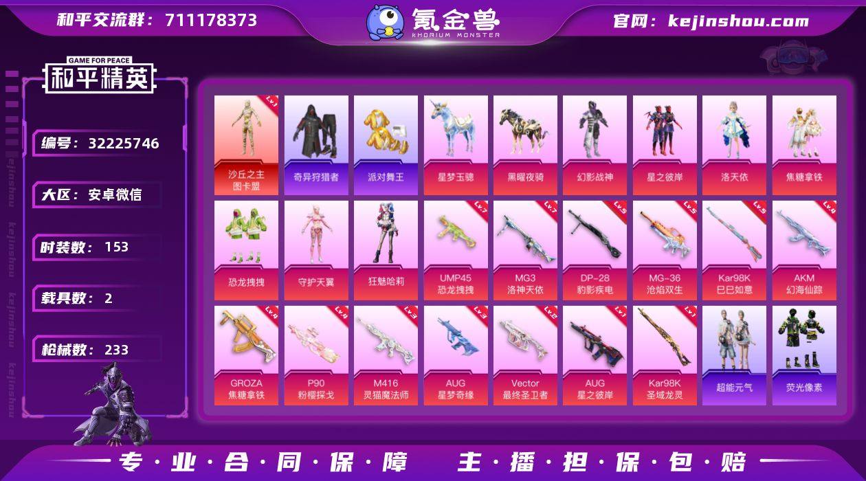 【AZH2883】安卓 微信【一级图卡盟 巡查衣幻影战神洛天依金靴子 星际漫游M416 星梦奇缘AUG 满级恐龙拽拽UMP45 满级洛神天依MG3 2载具】1神装-7粉装-18特效枪-2载具-8粉色飞行器-72819热力值-11王牌印记-153套装-233枪皮 【红色神装等级】:沙丘之主-图卡盟(一级) 【红色角色神装】:沙丘之主-图卡盟 【热门品类】:绝对防御上衣,套装-浪漫天命,套装-派对舞王,套装-小丑鱼,套装-奇异狩猎者,套装-忍者信条,套装-粉红小猪,角色-8号机,M416-星际漫游,熔岩游骑兵连帽夹克 【粉色套装】:粉装-幻影战神,粉装-星之彼岸,角色-洛天依,粉装-焦糖拿铁,粉装-恐龙拽拽,角色-守护天翼,角色-狂魅哈莉 【粉色枪皮等级】:AKM-幻海仙踪(四级),M416-灵猫魔法师(三级),GROZA-焦糖拿铁(四级),AUG-星之彼岸(一级),AUG-星梦奇缘(三级),ACE32-萌骑漫游(一级),UMP45-恐龙拽拽(七级),Vector-最终圣卫者(二级),AKS-74U-森灵之息(五级),P90-粉樱探戈(四级),Kar98K-巳巳如意(五级),Kar98K-圣域龙灵(一级),Mk14-福马献瑞(五级),AA12-G-萌骑幻想(一级),DP-28-豹影疾电(五级),MG3-洛神天依(七级),PKM-萌骑夺宝(一级),MG-36-沧焰双生(五级) 【粉色载具】:星梦玉骢,黑曜夜骑 【粉色枪皮】:AKM-幻海仙踪,M416-灵猫魔法师,GROZA-焦糖拿铁,AUG-星之彼岸,AUG-星梦奇缘,ACE32-萌骑漫游,UMP45-恐龙拽拽,Vector-最终圣卫者,AKS-74U-森灵之息,P90-粉樱探戈,Kar98K-巳巳如意,Kar98K-圣域龙灵,Mk14-福马献瑞,AA12-G-萌骑幻想,DP-28-豹影疾电,MG3-洛神天依,PKM-萌骑夺宝,MG-36-沧焰双生 【粉色飞行器】:香车宝马飞行器,炫彩糖果飞行器,焦糖拿铁飞行器,圣域金龙飞行器,终晖之翼飞行器,灵猫魔法师飞行器 【粉色降落伞】:绝对恒星降落伞,极限特训降落伞,幻影战神降落伞,星之彼岸降落伞,洛神天依降...