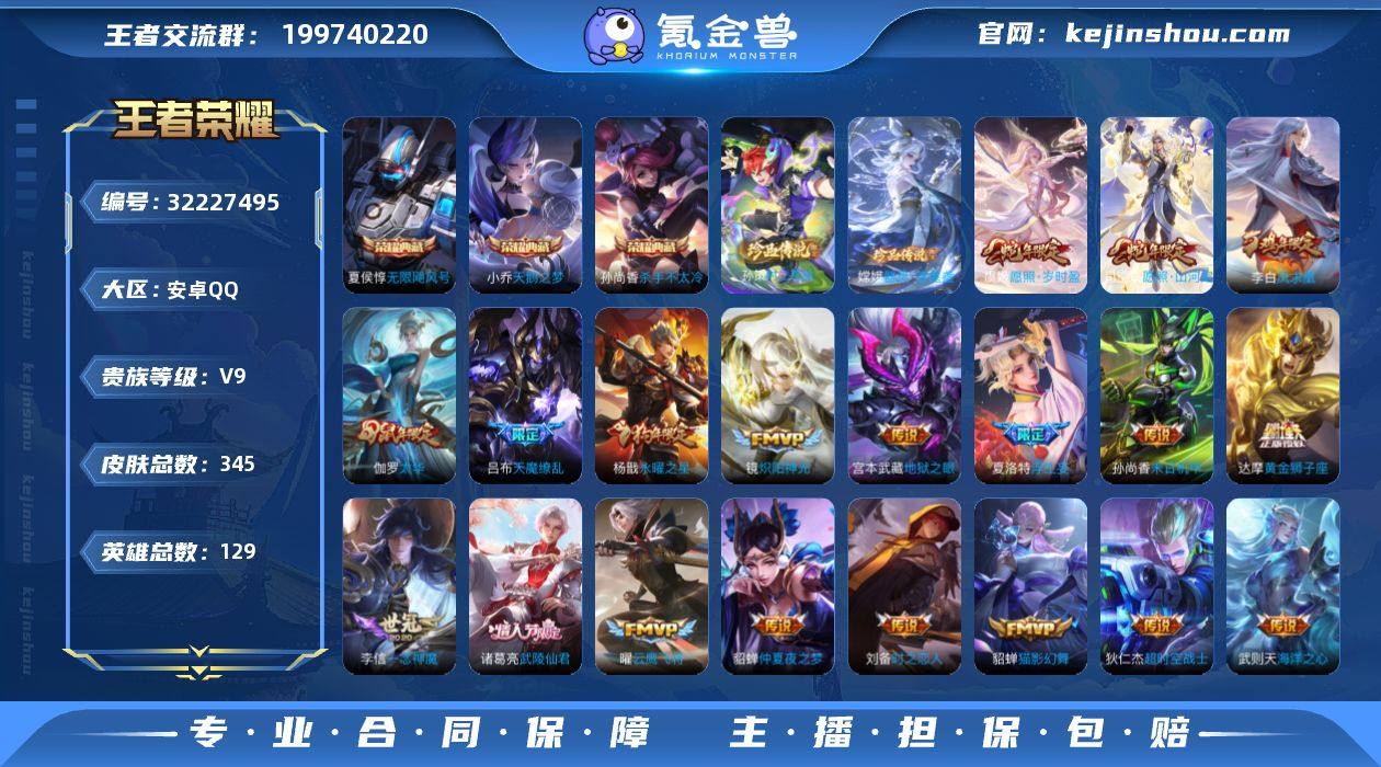 【9】贵族9/皮肤345/典藏3/传说21/史诗103/英雄129/苍全皮/影全皮/武则天/无限飓风号/天鹅之梦/杀手不太冷/器灵·落星盏/时之奇旅-孙策/愿照·山河定/愿照·岁时盈/浮生妄/炽阳神光/启明星使/云鹰飞将/一念神魔/时之恋人-刘备/太华/猫影幻舞/黄金狮子座/永曜之星/武陵仙君/仲夏夜之梦/凤求凰/末日机甲-孙尚香/地狱之眼/地狱火/天魔缭乱/海洋之心/超时空战士-狄仁杰/狰(s8)/天穹之誓(s36)/阴阳师/纯白花嫁/凯尔特女王(s7)/皇家上将/引擎之心/龙胆/热情桑巴/时之彼端/白昼王子/狮舞东方/蜃楼王(s4)/玄嵩/高山流水/死亡摇滚/王者之锤/妖精王(s5)/炼金王(s6)/重明(s11)/猎兽之王/真爱至上/赤莲之焰/云间偶戏/朔风刀(s17)/幽恒/游园惊梦/烛龙(s10)/天狼征服者/穷奇(s12)/岱宗/逐梦之星/暗影游猎/魔术师/万华元夜(s22)/沙漠行僧(s26)/海滩派对/霸王别姬-项羽/醍醐杖(s20)/冰锋战神/魔法小厨娘/演武夺筹(s23)/逐梦之影/飞衡/凤凰于飞/驯魔猎人/金庭之子(s27)/狮心王(s3)/潮玩骑士王/至尊宝/御旌(s15)/辉光之辰/如梦令-后羿/圣弓游侠/虎魄/银河之约/云中旅人(s29)/霸王别姬-虞姬/神迹守卫-钟馗/驱傩正仪(s24)/遇见飞天/真爱魔法/黎明之约/繁星吟游/饕餮(s9)/原初探秘者(s21)/烈魂/千军破阵(s25)/混沌棋(s18)/星空之诺/疑决卦(s19)/李小龙/御狮(s13)/御霄(s14)/纤云弄巧/御銮(s16)/西部大镖客-猪八戒/梁祝/天狼绘梦者/如梦令-嫦娥/拒霜思/海盐诗旅(s30)/鬼谷子天穹祈灯(S34)/龙武盛年/噬灭天穹(s37)/谧流熔炉/荣光之誓/星界战将/百相守梦-百里守约/百相守梦-老夫子/茶境仙/访茗客/鸭鸭历险记-刘禅/鸭鸭历险记-沈梦溪/线条小狗-周瑜/罗小黑战记/灵蛊蚀心/龙之律动/狼魂孤将/奇遇舞章/乐园奇幻夜/月团寄思/天秀·启明/神威/修罗/魅语/晚萤/无限星赏官/鹰眼统帅/箭羽风息/猫狗日记-大乔/猫狗日记-孙策/节奏热浪/星夜王子/逐浪之夏/...