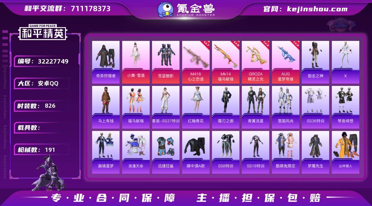 我这个是一个关联账号,王者和吃鸡在一起的,吃鸡有很多身法套装,还有口罩,还有很多老枪皮, S1赛季就开始玩了,2018年刚出的时候王者目前是贵族7,还差1000块钱就贵族8了 ,真的是良心账号,我说没钱吃饭了,不然我都不会卖