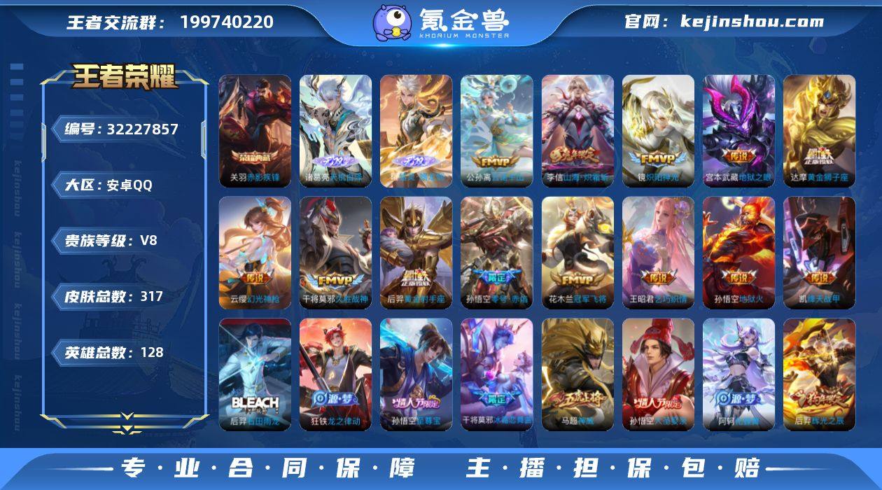 V8 1典藏 2无双 2珍品传说 22传说 128英雄 317皮肤 可修改实名 男号 【英雄全皮】司空震全皮,橘右京全皮,元歌全皮,敖隐全皮,蚩奼全皮,鬼谷子全皮,大禹全皮 【稀有英雄】敖隐(小龙人),大司命,嬴政(始皇帝),韩信(韩跳跳),夏洛特(夏师傅),艾琳,橘右京(橘子),娜可露露(鸟人),不知火舞,赵云,金蝉(唐僧),戈娅 【荣耀水晶】赤影疾锋 【无双皮】天机白泽,器灵·螭龙剑 【珍品传说】怪盗基德,时之奇旅-孙策 【传说皮】幻光神枪,神树通天,千山共赴,诡秘之主,云诺千山,山海·炽霜斩(李信年限),黄金狮子座,黄金射手座,零号·赤焰,地狱火,地狱之眼,冠军飞将,久胜战神,炽阳神光,音你心动-小乔,乞巧织情,绛天战甲(鸡嘴战神) 【珍宝阁皮】万物之道,女武神,玩趣恶龙 【赛季/战令皮】噬灭天穹(s37),古海寻踪(s33),星界游侠,海盐诗旅(s30),擒涛扼浪(s31),潮玩骑兵,奇幻香踪,探海日志(s32),玲珑珍味,流音漫舞,顽趣-梦奇,地狱燃心,剑破天穹(s35),天穹祈灯(s34),青焰无极,苍威无极,天穹之誓(s36),暖冬·兔眠,朔风刀(s17),混沌棋(s18),疑决卦(s19),醍醐杖(s20),原初探秘者(s21),万华元夜(s22),演武夺筹(s23),驱傩正仪(s24),千军破阵(s25),蓝屏警告,潮玩骑士王,云间偶戏,星际陆战队-达摩,胡桃异想国,神迹...
