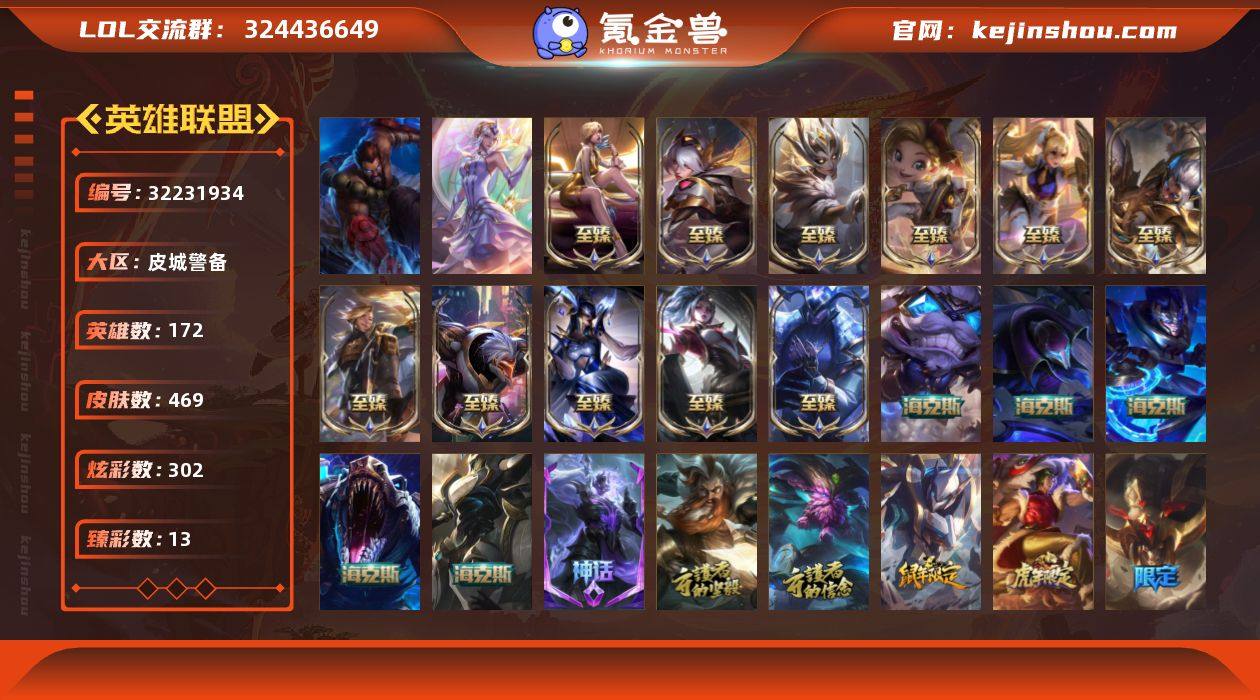 t37614【皮城警备】469皮肤 302炫彩 13臻彩 23神话/76限定/59传说/172英雄 账号等级:586 【重要头像】爱情之歌 神凰行者萨勒芬妮 两仪无极 救生圈 KDA萨勒芬妮 塞巴斯蒂安 星守金克丝炫彩 青花瓷丽桑卓炫彩 真实伤害艾克 真实伤害阿卡丽 西部天使赛娜神话炫彩 至臻青花瓷丽桑卓 至臻战斗学院蕾欧娜 至臻魔女婕拉 灰烬慎头像 灰烬慎炫彩头 【重要皮肤】魔女阿卡丽至臻 DRX亚托克斯至臻 青花瓷丽桑卓至臻 战斗学院蕾欧娜至臻 魔女婕拉至臻 奥术师佐伊至臻 灵能特工伊泽瑞尔至臻 源计划阴劫至臻 神龙尊者炎龙瑟提至臻 KDA伊芙琳至臻 源计划正义艾瑞莉娅至臻 殿堂传奇乐芙兰 灰烬守护者慎 海克斯科技雷克顿 海克斯科技吉格斯 海克斯科技嘉文四世 海克斯科技魔腾 水晶掠夺者卡兹克 永恒之森奥恩 光明哨兵奥拉夫 零之枪骑赫卡里姆 胜利行刑官德莱文 胜利剑圣易 胜利女神娑娜 胜利之王泰达米尔 胜利巨口克格莫 养蜂人辛吉德 玉剑传说舞剑仙 神凰行者幽羽玄凰萨勒芬妮 龙腾虎跃瑟提 胜利女神瑟庄妮 胜利机器人布里茨 胜利枪神卢锡安 胜利之剑亚托克斯 觅心萝莉金克丝 幽梦玫瑰辛德拉 冬季仙境卡尔玛 冰封王子蒙多 冰雪女神辛德拉 魄罗骑士瑟庄妮 平安夜女神娑娜 魅惑女巫奈德丽 死亡誓约劫 泳池派对普朗克 泳池派对奥莉安娜 泳池派对嘉文四世 泳池派对塔莉垭 泳池派对厄运小姐 泳池派对格雷福斯 泳池派对李青 泳池派对雷克顿 泳池派对瑟提 泳池派对布隆 电玩战魂赫卡里姆 EDG佛耶戈 EDG悠米 DWG凯南 FPX李青 iG卡莎 SKTT1扎克 SKTT1烬 SKTT1辛德拉 SKTT1瑞兹 SKTT1阿兹尔 SSW图奇 SSW辛吉德 SKTT1劫 暗杀星奥莉安娜 Fnatic库奇 Fnatic古拉加斯 Fnatic嘉文四世 Fnatic卡尔萨斯 冰雪节玛尔扎哈 冰雪节辛吉德 冰雪兽纳尔 防暴...