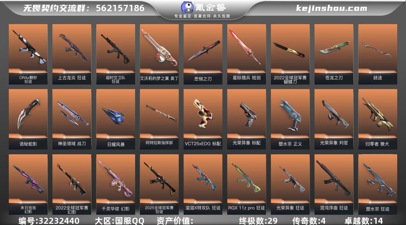 【MWW516】【套装】:2022全球冠军赛套装,无畏契约季前邀请赛套装,光荣异象套装,神中神罚套装 【英雄】:幻棱,炼狱,维斯,暮蝶,钛狐,壹决,铁臂,捷风,雷兹,幽影,不死鸟,贤者,猎枭,蝰蛇,零,芮娜,奇乐,尚勃勒,霓虹,斯凯,夜露,星礈,K/O,海神,盖可,黑梦,钢锁 【近战武器】:近战武器-2022全球冠军赛 蝴蝶刀,近战武器-碎心裂刃,近战武器-无畏契约季前邀请赛 悲悯之刃,近战武器-5周年//公测重制版 苍龙之刃,近战武器-光荣异象 歧途,近战武器-神之刃,近战武器-落英飞旋,近战武器-天御刀,近战武器-诡秘蛇影 军刀,近战武器-神圣领域 战刀,近战武器-日耀风暴 遗器,近战武器-阿特拉斯指挥部 甩棍,近战武器-星际猎兵 短剑 【狂徒】:狂徒-2025全球冠军赛,狂徒-混沌序曲,狂徒-塑水宗,狂徒-RGX 11z Pro,狂徒-光荣异象,狂徒-滋滋X特攻队,狂徒-ORA x 颗秒,狂徒-上古龙炎,狂徒-超时空卫队,狂徒-掠影,狂徒-盖亚的复仇,狂徒-紫阙金琅,狂徒-离子武器//2.0,狂徒-诡秘蛇影 【幻影】:幻影-2022全球冠军赛,幻影-千灵华绽,幻影-末日泡泡,幻影-般若假面,幻影-异鳞魔蛇,幻影-神中神罚,幻影-神圣领域,幻影-末日之翼 【戍卫】:戍卫-天界神兵,戍卫-月球哨兵,戍卫-折光棱晶 【獠犬】:獠犬-归零者,獠犬-神圣领域,獠犬-逆冲蛮牛 【冥驹】:冥驹-光荣异象,冥驹-堕天遗武,冥驹-星云暗涌 【飞将】:飞将-末日之翼 【莽侠】:莽侠-神中神罚,莽侠-诡秘蛇影,莽侠-月球哨兵 【战神】:战神-盖世英雄,战神-神圣领域 【奥丁】:奥丁-艾沃莉的梦之翼,奥丁-末日之翼 【判官】:判官-光荣异象,判官-诡秘蛇影,判官-纳米打击x 【雄鹿】:雄鹿-逆冲蛮牛,雄鹿-月球哨兵 【骇灵】:骇灵-神中神罚,骇灵-荒土机兵,骇灵-星云暗涌 【蜂刺】:蜂刺-星云暗涌,蜂刺-折光棱晶 【标配】:标配-...
