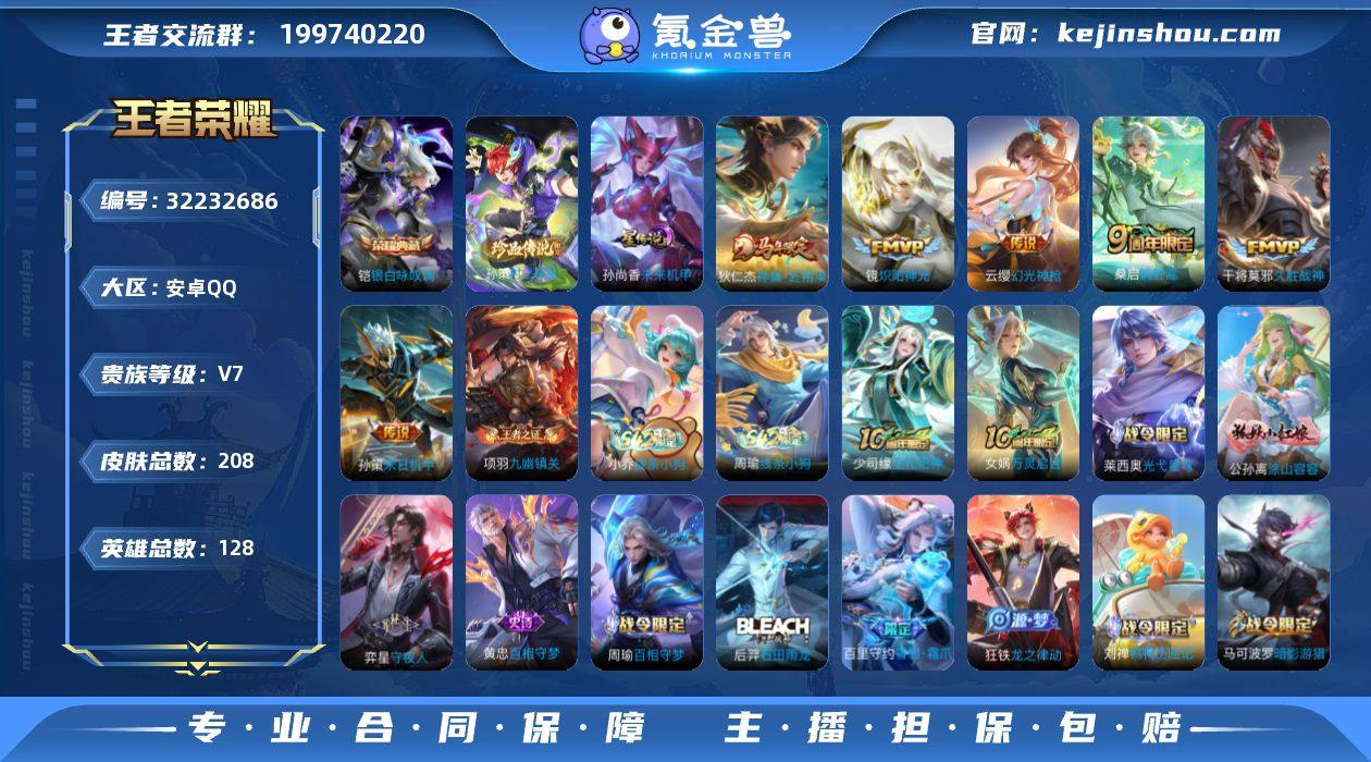 BHC80973 1星元/15按键/5000星元币/安卓Q-V7-最强王者段位-128英雄-208皮肤-1典藏皮肤-1珍品传说-6传说-55史诗 【英雄全皮】:刘禅全皮,孙权全皮,敖隐全皮,空空儿全皮,影全皮 【荣耀典藏】:铠银白咏叹调 【珍品传说】:孙策时之奇旅 【传说皮肤】:狄仁杰神骥赴朔漠,云缨幻光神枪,桑启鸣野蒿,孙策末日机甲,镜炽阳神光,干将莫邪久胜战神 【限定皮肤】:大乔绒语心约,虞姬夏日便利店,姜子牙天穹之誓,李白谪仙醉月,狄仁杰阴阳师,赵云皇家上将,孙尚香蔷薇恋人,元歌无心,马可波罗暗影游猎,狄仁杰魔术师,项羽海滩派对,王昭君午后时光,李元芳云中旅人,鬼谷子五谷丰年,沈梦溪大漠名商,裴擒虎擒涛扼浪,上官婉儿梁祝,西施玲珑珍味,鲁班大师探海日志,桑启海盐诗旅,艾琳流音漫舞,阿古朵江河有灵,张良古海寻踪,鬼谷子天穹祈灯,姬小满妄想食味,沈梦溪龙舞盛年,刘邦剑破天穹,程咬金群星魔术团,刘备异域游侠,周瑜熔金海岸 【赛季限定】:沈梦溪大漠名商,李元芳云中旅人,桑启海盐诗旅,裴擒虎擒涛扼浪,鲁班大师探海日志,张良古海寻踪,鬼谷子天穹祈灯,刘邦剑破天穹,姜子牙天穹之誓,东皇太一噬灭天穹,太乙真人谧流熔炉,钟馗虚灵犬护,甄姬逆浪...