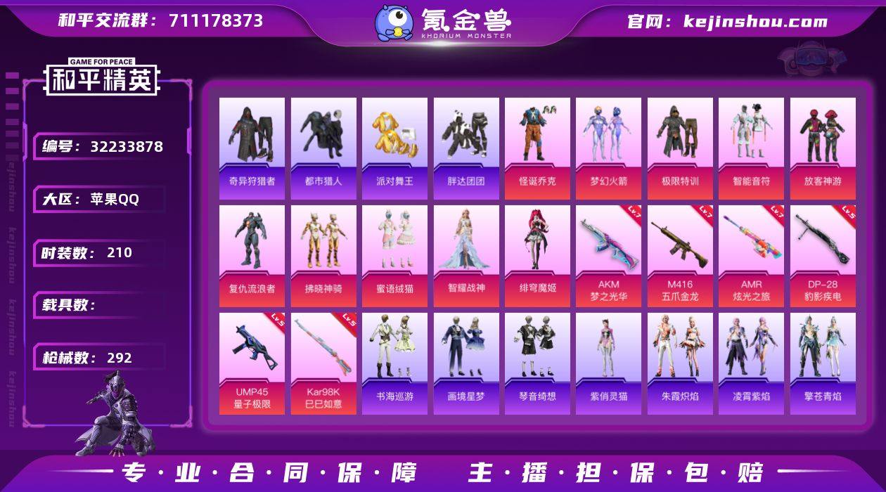 无二次-苹果 手Q-无敌战神框-11粉装-8特效枪-0载具-4粉色飞行器-97868热力值-20王牌印记-210套装-292枪皮HZ2631103 【热门品类】:粉装-怪诞乔克,粉装-梦幻火箭,套装-浪漫天命,套装-都市猎人,套装-派对舞王,套装-小丑鱼,套装-奇异狩猎者,套装-胖达团团,角色-2P战斗服款,套装-龟仙人,套装-暗影哥特 【粉色套装】:粉装-极限特训,粉装-怪诞乔克,粉装-梦幻火箭,粉装-智能音符,粉装-放客神游,角色-复仇流浪者,粉装-拂晓神骑,粉装-蜜语绒猫,角色-智耀战神,角色-绯穹魔姬,角色-罪夜之冕 【粉色枪皮等级】:AKM-梦之光华(七级),M416-五爪金龙(七级),UMP45-量子极限(五级),Kar98K-巳巳如意(五级),Mk14-福马献瑞(一级),AMR-炫光之旅(七级),AA12-G-萌骑幻想(四级),DP-28-豹影疾电(五级) 【粉色枪皮】:AKM-梦之光华,M416-五爪金龙,UMP45-量子极限,Kar98K-巳巳如意,Mk14-福马献瑞,AMR-炫光之旅,AA12-G-萌骑幻想,DP-28-豹影疾电 【粉色飞行器】:炫彩糖果飞行器,千面幻镜飞行器,镜域双华-灵镜之阶,飞天猪飞行器 【粉色降落伞】:幻影战神降落伞,百万伏特降落伞,星之彼岸降落伞,筑梦精灵降落伞,垂柳戏鸭降落伞,翩跹演武降落伞,第五大道降落伞,未来歌姬降落伞,圣堂之誓降落伞,繁龙极客降落伞,镜域双华降落伞,金丰海韵降落伞,智耀战神降落伞,星穹咏叹调降落伞,喜羊羊与灰太狼降落伞,炫彩糖果降落伞,罪夜之冕降落伞 【稀有套装】:套装-龟仙人,套装-雪国风尚,套装-马上有钱,套装-雏菊兔兔,套装-萝兰蝴蝶,角色-达芬奇,套装-糖糖葫芦,套装-青团波波,角色-摩登魅猫,角色-光矢逐梦,套装-燕燕于飞,套装-鱼渊荷华,套装-紫幽梦,套装-蓝冰羽,套装-星影赞美诗,套装-彩虹兔,套装-云朵鹅,套装-雪绒豹,角色-夜瞳黯灵,套装-朱霞炽焰,套装-凌霄紫焰,套装-擎苍青焰,...