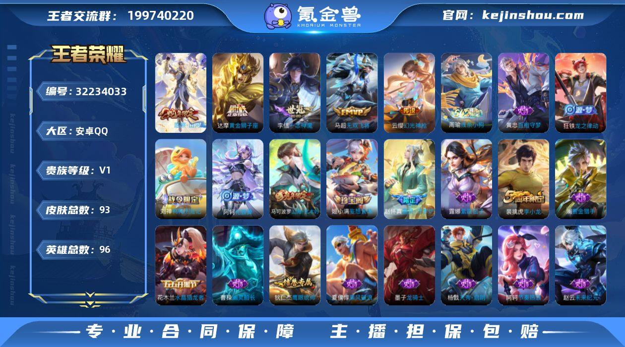 安卓Q-V1-永恒钻石I段位-96英雄-93皮肤-5传说-25史诗【英雄全皮】:影全皮【传说皮肤】:司空震愿照山河定,云缨幻光神枪,马超无双飞将,李信一念神魔,达摩黄金狮子座【限定皮肤】:蒙犽顽岩魄,姜子牙天穹之誓,狄仁杰阴阳师,赵云皇家上将,马可波罗山海玄木吟,项羽海滩派对,裴擒虎李小龙,姬小满妄想食味【年限皮肤】:马可波罗山海玄木吟,司空震愿照山河定【赛季限定】:姜子牙天穹之誓,东皇太一噬灭天穹,太乙真人谧流熔炉,钟馗虚灵犬护,甄姬逆浪荇歌,亚瑟荣光之誓【战令限定】:刘禅鸭鸭历险记,沈梦溪鸭鸭历险记,周瑜线条小狗【史诗皮肤】:周瑜线条小狗,黄忠百相守梦,狂铁龙之律动,刘禅鸭鸭历险记,阿轲化蝶舞,赵怀真器灵浮梦炉,蒙犽顽岩魄,姬小满妄想食味,马可波罗山海玄木吟,澜赏金猎手,杨戬天秀启明,裴擒虎李小龙,狄仁杰鹰眼统帅,阿轲节奏热浪,夏侯惇乘风破浪,刘邦德古拉伯爵,花木兰水晶猎龙者,曹操幽灵船长,吕布圣诞狂欢,墨子龙骑士,孙尚香水果甜心,宫本武藏鬼剑武藏,貂蝉圣诞恋歌,赵云未来纪元,赵云皇家上将,露娜紫霞仙子【其他皮肤】:艾琳鹤鸣心笺,亚瑟荣光之誓,莱西奥踏浪烽翎,庄周锦麟游梦,甄姬逆浪荇歌,白起死霸装...