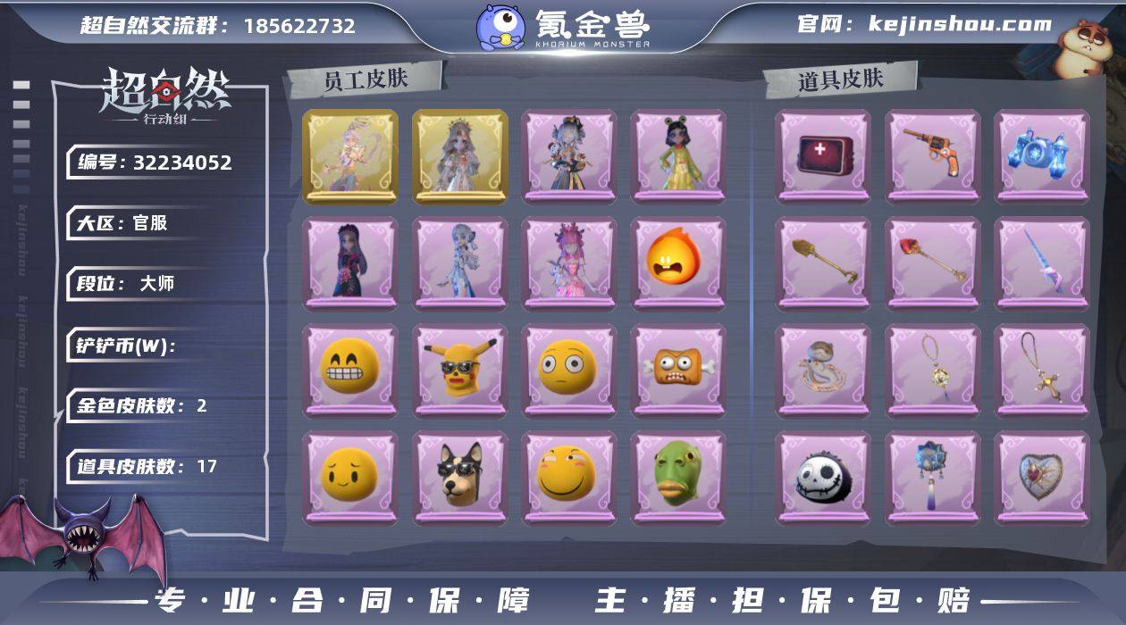 红色皮肤数量:0 金色皮肤数量:2 紫色皮肤数量:5 道具皮肤数量:17 莲华渡,圣光之谕 卖家说:极品ID少女主 薇薇安奖池保底、逍遥奖池皮肤、露比枪保底、叶罗丽联动、僵尸道长联动、巫零儿紫皮,众多个性道具,个性动作。