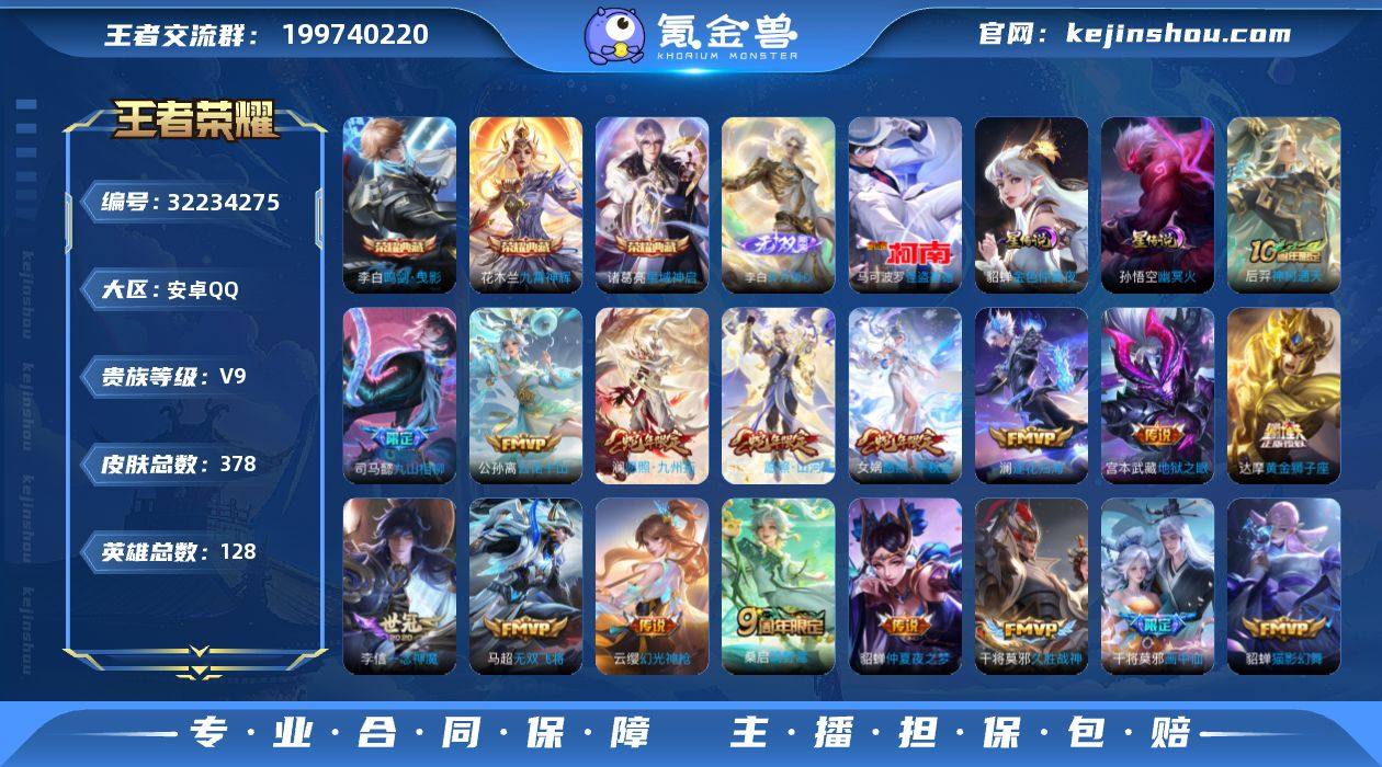【店铺主推·弑枪猎影·问心剑·沧流箭·岁雨灵司·神骥逐星野·愿照九州拓·逐花归海·霜月吟·夜礼服假面·时雨天司·至尊宝】【可二次】YXw18231-安卓Q-128英雄-328皮肤-14王者印记-300铭文-贵族积分8w【贵族8】【1典藏·1无双·1珍品·3星传说·26传说·27按键】【因赛季更新游戏段付以上号为准!】 【英雄全皮】:孙权全皮,百里守约全皮,猪八戒全皮,敖隐全皮,蒙恬全皮,戈娅全皮,空空儿全皮,影全皮,海诺全皮 【荣耀典藏】:韩信弑枪猎影 【无双皮肤】:李信问心剑 【珍品传说】:伽罗沧流箭 【星元皮肤】:诸葛亮岁雨灵司,孙尚香未来机甲,宫本武藏幽冥之眼 【传说皮肤】:马超神骥逐星野,后羿神树通天,干将莫邪千山共赴,澜愿照九州拓,云缨幻光神枪,桑启鸣野蒿,墨子黄金天蝎座,澜逐花归海,露娜霜月吟,狄仁杰夜礼服假面,马可波罗妄想实况,百里守约碎云,王昭君乞巧织情,诸葛亮时雨天司,铠绛天战甲,镜炽阳神光,虞姬启明星使,孙悟空零号赤焰,曜云鹰飞将,刘备时之恋人,张良黄金白羊座,干将莫邪久胜战神,梦奇胖达荣荣,后羿黄金射手座,孙尚香末日机甲,宫本武藏地狱之眼 【限定皮肤】:暃埋骨钱,蒙犽顽岩魄,蔡文姬夏日便利店,虞姬夏日便利店,姜子牙天穹之誓...
