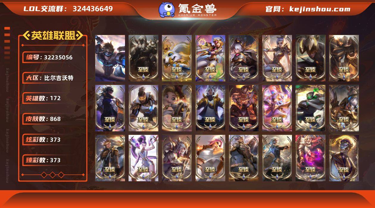 【特价出售/店主推荐】铂金段位-171英雄-720皮肤-203炫彩-5终极-30神话-116限定-71传说-162史诗 【至臻皮肤】:至臻电玩女神凯特琳,至臻电玩女神凯特琳(2022),至臻黑夜使者李青,至臻黑夜使者李青(2022),至臻天龙之子伊泽瑞尔,至臻魔女阿卡丽,至臻王国机神玄武盖伦,至臻玉剑传说武剑仙锐雯,至臻玉剑传说武剑仙(2022),至臻KDA阿狸,至臻KDA阿狸(2022),至臻KDA卡莎,至臻KDAALLOUT卡莎,至臻月蚀骑士赛娜,至臻腥红之月亚托克斯,至臻腥红之月亚托克斯(2022),至臻斗魂觉醒派克,至臻心之钢永恩 【臻彩皮肤】:无畏骑士瑟庄妮赤子初心,吕布奉先炫金战神,张辽文远炫金将军,南天之怒沃里克炫金天神,冠军之刃锐雯2016凯旋圣装,冠军之矛卡莉丝塔凯旋圣装,雾雨之刃锐雯,西部天使赛娜神选天使长,幻灵战斗蝠薇恩梦幻强袭 【年限皮肤】:古琴余韵娑娜,定海神珍孙悟空,神龙之翼库奇,广寒仙子嫦娥,美猴王孙悟空,玉净夜叉凯特琳,张辽文远,司马懿仲达,虎痴之拳蔚,南天之怒沃里克,北辰之威内瑟斯,金猪烈焰瑟庄妮,烈焰美人薇恩,王国机神青龙德莱文,福牛守护者嘉文四世,天龙之子斯莫德 【海克斯皮肤】:海克斯科技崔丝塔娜,海克斯科技魔腾,海克斯科技雷克顿...