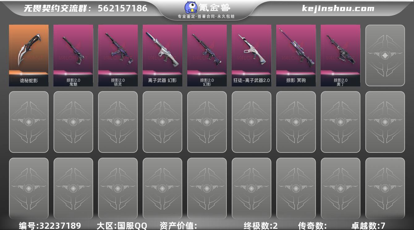 【套装】:噬影者套装 【英雄】:幻棱,炼狱,暮蝶,钛狐,壹决,铁臂,捷风,雷兹,不死鸟,贤者,猎枭,蝰蛇,零,芮娜,奇乐,尚勃勒,霓虹,夜露,盖可,黑梦 【卡面】:进入射程 卡面,分崩离析 卡面,纳米打击 卡面,抑制技术 卡面,激斗汉堡 卡面,瓦娃脸雪糕 P2 卡面,从黄昏到黎明 卡面,荒土机兵 卡面,银弹猎手 卡面,逆冲蛮牛 卡面,精灵大战 卡面,欢迎来到底城 卡面,南瓜盛典 卡面,无畏契约GO!第一卷:芮娜 卡面,无畏契约GO!第一卷:零 卡面,《双城之战》金克丝 卡面,代号红色 卡面,新兵报到 卡面,V契约 卡面,无畏契约 卡面 【喷漆】:小小心意 喷漆,战“素”兔 喷漆,宇宙的指引 喷漆,请求重启 喷漆,逆冲蛮牛 喷漆,纳米打击 喷漆,鼻尖上的蝴蝶 喷漆,简笔画黯兽 喷漆,独守蝰腹 喷漆,他们将落荒而逃 喷漆,通缉:战术企鹅 喷漆,荒土机兵 喷漆,别挡我吃球! 喷漆,嗨宝南瓜灯 喷漆,控场勿近 喷漆,买装还是存钱 喷漆,胜利属于无畏契约 喷漆,GLHF 喷漆,无畏契约 喷漆 【挂饰】:V25第六幕:超凡 挂饰,V25第三幕:超凡 挂饰,终章:猫猫木乃伊 挂饰,荒土机兵 挂饰,悠闲鸡块 挂饰,猫猫木乃伊 挂饰,水壶 挂饰,纳米打击 挂饰,逆冲蛮牛 挂...