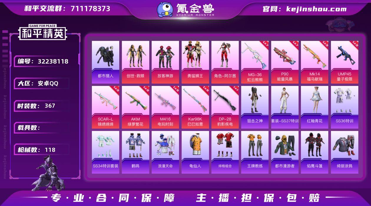 和平精英成品号,安卓QQ区,资源多,装备齐全,皮肤时装、滑翔尾迹、降落伞、枪械皮肤都有,角色多,装备7级,账号安全,直接上手玩。支持上号看号,喜欢直接拍。