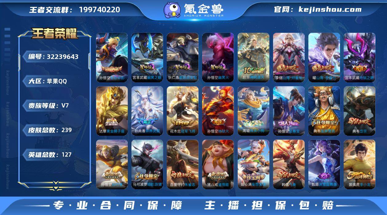 苹果Q-V7-至尊星耀I段位-打野19段,发育路19段3星元幽冥火,幽冥之眼,星际治安官,,127英雄-239皮肤-1典藏皮肤-8传说-50史诗 【英雄全皮】:敖隐全皮 【荣耀典藏】:孙悟空全息碎影 【传说皮肤】:后羿神树通天,曜山海苍雷引,李信山海炽霜斩,孙尚香异界灵契,达摩黄金狮子座,花木兰冠军飞将,宫本武藏地狱之眼,孙悟空地狱火 【限定皮肤】:狄仁杰阴阳师,赵云皇家上将,墨子神迹守卫,嬴政优雅恋人,嬴政白昼王子,孙尚香蔷薇恋人,孙尚香异界灵契,庄周高山流水,高渐离死亡摇滚,吕布猎兽之王,周瑜赤莲之焰,元歌无心,夏侯惇朔风刀,甄姬游园惊梦,典韦蓝屏警告,典韦岱宗,马可波罗暗影游猎,狄仁杰魔术师,狄仁杰万华元夜,达摩星际陆战队,达摩沙漠行僧,项羽海滩派对,老夫子醍醐杖,老夫子航海奇遇记,程咬金演武夺筹,刘邦夺宝奇兵,韩信逐梦之影,韩信飞衡,兰陵王驯魔猎人,兰陵王金庭之子,孙悟空至尊宝,孙悟空孙行者,牛魔御旌,李元芳银河之约,李元芳云中旅人,钟馗驱傩正仪,女娲朔望之晖,鬼谷子原初探秘者,鬼谷子五谷丰年,苏烈千军破阵,百里玄策原初追逐者,百里守约朱雀志,弈星混沌棋,沈梦溪星空之诺,沈梦溪大漠名商,明世隐疑决卦,裴擒虎...