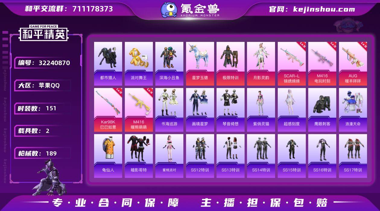 【战神框 都市 金鞋 极限特训 双马尾 哥特 满地铁天赋】YXc27315-【可二次】【因赛季更新游戏段付以上号为准!】 苹果Q-4稀有1载具2粉装10特效枪8热门151套装189枪皮 11印记 历史无敌战神 【4稀有】 都市猎人 浪漫天命 派对舞王 派对舞王(金靴子) 【2载具】 星梦玉骢 凌风神骏 【2粉装】 月影灵韵 极限特训 【9特效枪】 SCAR-L-锦绣绵绵 (5级) M416-电玩时刻 (5级) Kar98K-巳巳如意 (5级) AUG-暖羊咩咩 (5级) GROZA-旋星之夜 (2级) M416-暖熊萌萌 (4级) AKS-74U-森灵之息 (3级) Mk14-福马献瑞 (5级) ACE32-萌骑漫游 (4级) 【8热门】 龟仙人 鹰眼刺客 深海小丑鱼 暗影哥特 水银刺客 漫步者 破蛋小黄鸡 极速红龙 【1飞行器】 绝色倾城飞行器 【1头盔】 幻影战神头盔 【2背包】 甜心宝贝背包 幻影战神背包