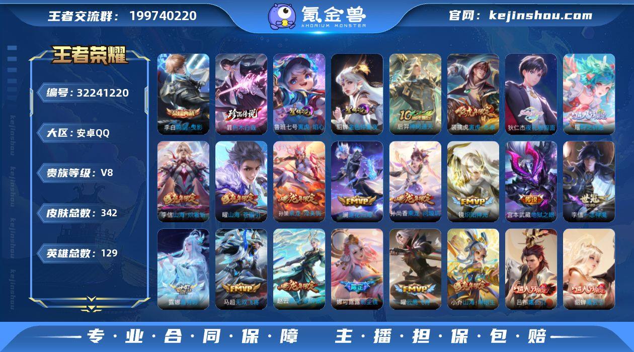 安卓Q-V8-至尊星耀II段位-129英雄-342皮肤-1典藏皮肤-1典藏英雄-1珍品传说-28传说-107史诗 【英雄全皮】:孙权全皮,影全皮 【荣耀典藏】:武则天英雄,李白鸣剑曳影 【珍品传说】:暃朽木白哉 【传说皮肤】:后羿神树通天,桑启鸣野蒿,吕布曦玄引,貂蝉曦玄引,孙尚香乘龙问璇玑,孙策乘龙淬吴钩,赵云乘龙铭钟鼎,澜逐花归海,露娜霜月吟,狄仁杰夜礼服假面,孙悟空齐天大圣,小乔山海琳琅生,曜山海苍雷引,李信山海炽霜斩,娜可露露前尘镜,马超无双飞将,瑶时之祈愿,裴擒虎寅虎赤拳,鲁班七号寅虎瑞焰,赵云淬星耀世,镜炽阳神光,虞姬启明星使,曜云鹰飞将,李信一念神魔,刘备时之恋人,貂蝉仲夏夜之梦,宫本武藏地狱之眼,武则天海洋之心 【限定皮肤】:蔡文姬夏日便利店,大乔绒语心约,虞姬夏日便利店,姜子牙天穹之誓,杨戬破阵退雄兵,狄仁杰阴阳师,廉颇寅虎御盾,小乔山海琳琅生,赵云皇家上将,墨子神迹守卫,嬴政白昼王子,鲁班七号狮舞东方,鲁班七号寅虎瑞焰,庄周高山流水,高渐离死亡摇滚,高渐离玩趣恶龙,钟无艳超时空战士,孙膑寅虎展翼,芈月幻夜卜梦,元歌云间偶戏,元歌无心,甄姬落雪兰心,典韦蓝屏警告,典韦岱宗,马可波罗山海玄木吟,狄仁杰魔术师,达摩沙漠行僧,项羽海滩派对,老夫子航海奇遇记,韩信飞衡,韩信傲雪梅枪,王昭君午后时光,兰陵王驯魔猎人,兰陵王金庭之子,娜可露露前尘镜,孙悟空至尊宝,孙悟空孙行者,孙悟空齐天大圣,后羿如梦令,后羿圣弓游侠,李元芳云中旅人,虞姬启明星使,钟馗驱傩正仪,杨玉环寅虎心曲,干将莫邪冰霜恋舞曲,干将莫邪真爱魔法,太乙真人华丽摇滚,鬼谷子五谷丰年,黄忠火炮绅士,铠青龙志,苏烈千军破阵,百里玄策原初追逐者,百里守约朱雀志,梦奇顽趣,沈梦溪大漠名商,裴擒虎天狼狩猎者,裴擒虎李小龙,裴擒虎寅虎赤拳,裴擒虎擒...