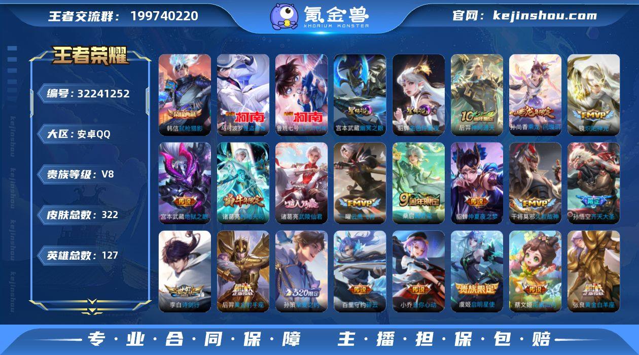 CHC51026,,,马可波罗怪盗基德/安卓Q-V8-至尊星耀I段位-127英雄-322皮肤-1典藏皮肤-2珍品传说-19传说-92史诗 【英雄全皮】:孙权全皮,戈娅全皮 【荣耀典藏】:韩信弑枪猎影 【珍品传说】:鲁班七号江户川柯南,马可波罗怪盗基德 【传说皮肤】:后羿神树通天,桑启鸣野蒿,孙尚香乘龙问璇玑,孙悟空齐天大圣,李白诗剑行,百里守约碎云,孙策挚爱之约,蔡文姬花朝如约,小乔音你心动,诸葛亮时雨天司,镜炽阳神光,虞姬启明星使,曜云鹰飞将,张良黄金白羊座,干将莫邪久胜战神,后羿黄金射手座,诸葛亮武陵仙君,貂蝉仲夏夜之梦,宫本武藏地狱之眼 【限定皮肤】:姜子牙天穹之誓,李白谪仙醉月,狄仁杰阴阳师,赵云皇家上将,孙尚香蔷薇恋人,高渐离玩趣恶龙,钟无艳超时空战士,芈月重明,吕布猎兽之王,元歌无心,夏侯惇朔风刀,甄姬落雪兰心,典韦穷奇,马可波罗暗影游猎,马可波罗山海玄木吟,狄仁杰魔术师,狄仁杰万华元夜,达摩沙漠行僧,项羽海滩派对,老夫子醍醐杖,程咬金演武夺筹,韩信飞衡,王昭君午后时光,兰陵王金庭之子,花木兰瑞麟志,孙悟空至尊宝,孙悟空齐天大圣,牛魔御旌,后羿圣弓游侠,李元芳银河之约,李元芳匿光侦查者,李元芳云中旅人,虞姬启明星使,钟馗驱傩正仪,雅典娜单词大作战,雅典娜黎明之约,太乙真人饕餮,鬼谷子原初探秘者,鬼谷子五谷丰年,诸葛亮武陵仙君,诸葛亮时雨天司,黄忠烈魂,苏烈千军破阵,百里玄策原初追逐者,弈星混沌棋,梦奇顽趣,沈梦溪大漠名商,明世隐疑决卦,裴擒虎李小龙,裴擒虎擒涛扼浪,狂铁御狮,狂铁电玩高手,米莱狄御霄,云中君纤云弄巧,盾山御銮,孙策挚爱之约,猪八戒西部大镖客,上官婉儿梁祝,上官婉儿天狼绘梦者,嫦娥暖冬兔眠,西施玲珑珍味,蒙犽狂想玩偶喵,鲁班大师探海日志,桑启海盐诗旅,暃星界游侠,戈娅驭风魔法,艾琳女武神...