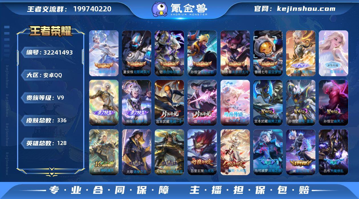 【店长推荐·全息碎影·无限飓风号·杀手不太冷·星空梦想·银白咏叹调·最初的交响·器灵螭龙剑·雪境奇遇·群星魔术团·碎月剑心·藏黑崎一护·朽木白哉·大耳狗之梦·诡秘之主·愿照九州拓·逐花归海·永恒水手月亮·大乔时之奇旅·遇见神鼓·深海之息·补天·时雨天司·武圣·白虎志·天魔缭乱】【可二次】YXw18552-安卓Q-128英雄-336皮肤-7王者印记-300铭文-贵族积分13w【贵族9】【6典藏·4无双·3珍品·4星传说·28传说·1天幕·12按键】【因赛季更新游戏段付以上号为准!】 【英雄全皮】:孙权全皮,敖隐全皮,空空儿全皮,影全皮 【荣耀典藏】:孙悟空全息碎影,夏侯惇无限飓风号,孙尚香杀手不太冷,鲁班七号星空梦想,铠银白咏叹调,伽罗最初的交响 【无双皮肤】:曜器灵螭龙剑,甄姬雪境奇遇,韩信群星魔术团,李白碎月剑心 【珍品传说】:宫本武藏黑崎一护,暃朽木白哉,瑶大耳狗之梦 【星元皮肤】:孙悟空幽冥火,宫本武藏幽冥之眼,孙悟空零号雷霆,刘备时之思念 【天幕】:电音狂想天幕 【传说皮肤】:后羿神树通天,元歌诡秘之主,大司命死亡执政官,澜愿照九州拓,裴擒虎祥瑞亨通,桑启鸣野蒿,孙尚香乘龙问璇玑,澜逐花归海,王昭君永恒水手月亮,大乔时之奇旅,鲁班七号时之奇旅,吕布遇见神鼓,马可波罗深海之息,女娲补天,周瑜音你心动,诸葛亮时雨天司,虞姬启明星使,孙悟空零号赤焰,关羽武圣,曜云鹰飞将,刘备时之恋人,虞姬云霓雀翎,百里玄策白虎志,花木兰冠军飞将,后羿黄金射手座,宫本武藏地狱之眼,孙悟空地狱火,吕布天魔缭乱 【限定皮肤】:白起狰,狄仁杰阴阳师,赵云皇家上将,赵云引擎之心,妲己热情桑巴,嬴政白昼王子,孙尚香蔷薇恋人,鲁班七号狮舞东方,鲁班七号时之奇旅,庄周云端筑梦师,高渐离玩趣恶龙,钟无艳王者之锤,孙膑天狼运算者,芈月重明,芈月白晶晶,吕布天魔缭乱,吕布猎兽之王,吕布遇...