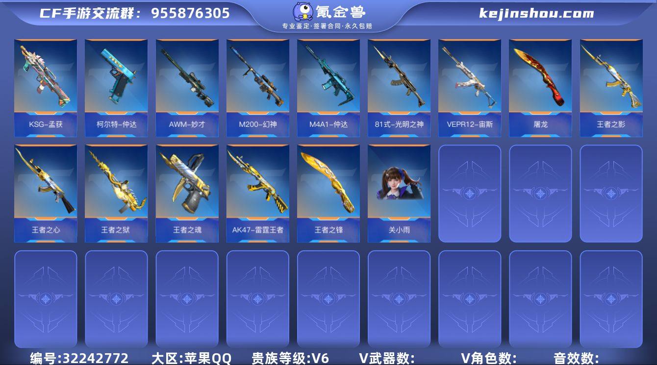 VIP6/274V/王者之神/王者之霆/王者之业/王者之誉/王者之尊/M200-权/CZS2-仲康/81式-光明之神/81式-机械纪元/81式-阿波罗/COP357-雷霆/审判者/樱/步练师/AK47-无影/AK47-火麒麟/AK47-猩红传说/AK47-血武士/AK47-黑鲨/AK47-木兰/AK47-雅韵青花/AK47-谜城烟火/AK47-钢铁狂热/M4A1-雷神/M4A1-黑骑士/M4A1-死神/M4A1-玫瑰精灵/M4A1-龙血/M4A1-竞界荣光/M4A1-机械迷城/M4A1-赛博雷神/M4A1-运输船/M4A1-猎神/M4A1-太白诗仙/SCAR-幽暗骑士/SCAR Light-白虎/SCAR-探星者/SCAR-印刷术/SCAR-心动PICK/AUG-机械纪元/FAMAS-湮灭/9A91-天神/9A91-魔蜥觉醒/M14EBR-天神/M14EBR-拂影/M14EBR-葫芦山庄/M16-恶魔/AK12-天启/QBZ03-金色蔷薇/QBZ03-死神/QBZ03-枪娘/QBZ03-玉面羞花/HK417-炎龙铠甲/QBZ19-天使/G36-李星云/SKS-美杜莎/G3A3-衍神兵/QBZ191-封神榜/AWM-竞界荣光/AWM-裁决/AWM-天使/AWM-大湾溢彩/巴雷特-毁灭/巴雷特-极光/巴雷特-冬灭觉醒/巴雷特-朱雀/暗杀神/M200-心动次元觉醒/09式狙-天神/98K-黑骑士/98K-血月/98K-星神/MR1-幽暗骑士/TAC-雷暴/RPK-美杜莎/加特林-堡垒/加特林-蟒蛇/刘易斯-血月/刘易斯-天使/MG36-魔礼青/QBB95-极光/MK5-极光/汤姆逊-烈龙/双持斯泰尔-天使/QCW05-变形金刚·大黄蜂/CBJ-MS-毒蜂/CZS2-心动次元觉醒/PP19野牛-造纸术/打击者-天神/地狱火/嗜血金鲨/KSG-火力竞放/KSG-极光/KSG-钟馗觉醒/贝雷塔-力拔山河/M1887-幽冥玄喵觉醒/M1216-血月/Origin12-机变奇蛇觉醒/USP-神罚/USP-机械迷城/USP-太白诗仙/沙鹰-修罗/沙鹰-飞电/沙鹰-天神/沙鹰-幻兽/沙鹰-超新星/沙鹰-神兵修罗/沙鹰-宇航兔兔/蚩尤战弓觉醒/双持GLOCK18-本初/GLOCK18-猎神/QSZ92-金色蔷薇/柯尔特-仲达/女皇利刃-铁胆虎魄/炽芒蝶刃/清刚-觉醒/龙啸/神罚战斧/血