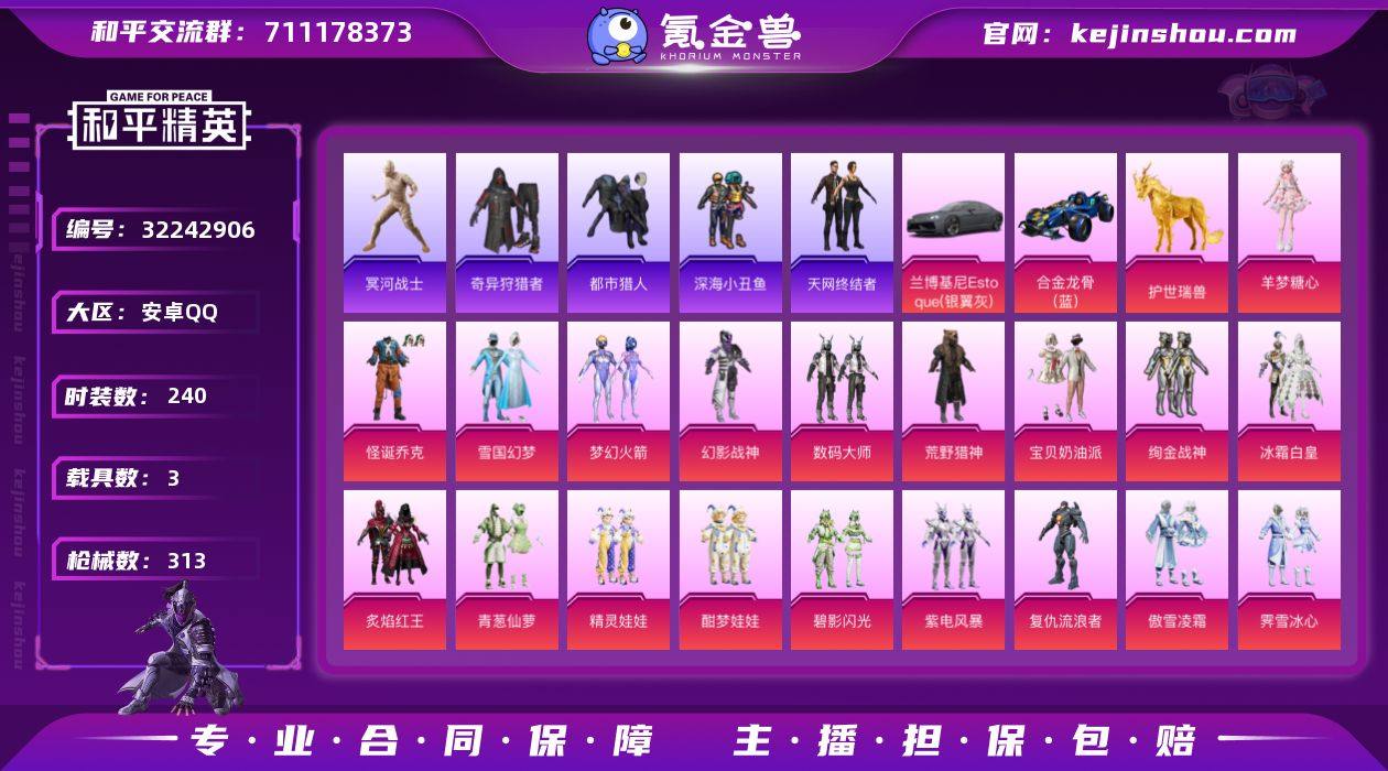 【木乃伊 都市 天网 新101 雪国 怪诞 番茄 双马尾 哥特 国宝头 粉熊包 满地铁天赋 5钻苏尔南手枪】YXc27273-【无二次】【因赛季更新游戏段付以上号为准!】 安卓Q-6稀有3载具23粉装18特效枪28热门240套装313枪皮 14印记 历史卓越王牌16星 【6稀有】 木乃伊 奇异狩猎者 AKM-缤纷海域 都市猎人 浪漫天命 天网终结者 【3载具】 兰博轿车灰色 合金龙骨蓝色 护世瑞兽 【23粉装】 觉醒初号机 梦幻火箭 雪国幻梦 宝贝奶油派 千金淑猫 怪诞乔克 未来领航者 羊梦糖心 幻影战神 酣梦娃娃 精灵娃娃 幻彩电音 荒野猎神 数码大师 绚金战神 冰霜白皇 炙焰红王 霁雪冰心 傲雪凌霜 紫电风暴 青葱仙萝 复仇流浪者 碧影闪光 【18特效枪】 M416-心之恋语 (1级) AKS-74U-信仰神谕 (5级) Kar98K-巳巳如意 (5级) MG-36-幻彩电音 (3级) M762-电糖天使 (5级) DP-28-千金淑猫 (5级) DP-28-豹影疾电 (5级) AUG-暖羊咩咩 (5级) AUG-超新星 (5级) M762-甜心娃娃 (1级) Mk14-爆裂游戏 (5级) GROZA-巴啦啦小魔仙 (5级) AUG-星之彼岸 (1级) UMP45-相思残雪 (5级) M416-暖熊萌萌 (7级) Vector-环太平洋 (5级) 燃烧瓶-薄荷可可 (3级) 破片手榴弹-秋玉花灯 (6级) 【28热门】 8号机 小丑鱼 红熊茄茄 青涩年华 雪山精英 呆萌铁蟹 鹰眼刺客 恶魔喵喵 激萌罗小黑 迅捷狂鲨 深海小丑鱼 浪漫波比 TT战队服 暗影哥特 赛罗奥特曼 醒狮腾龙 团圆交子 瑞龙福将 纯白誓言 粉红小猪 忍者信条 狂沙舞者 漫步者 破蛋小黄鸡 军刀雅典娜 英勇保护者 弄潮海豚 M762-瑞龙福将 【3飞行器】 童趣迷兔飞行器 星夜魔法师飞行翼 焦糖拿铁飞行器 【5头盔】 国宝胖达头盔 梦幻火箭头盔 雪国精灵头盔 幻影战神头盔 深海小丑鱼头盔 【7背包】 梦幻火箭背包 雪国精灵背包 百万伏特背包 幻影战神背包 萌熊伴侣背包 深海小丑鱼背包 甜蜜誓约背包