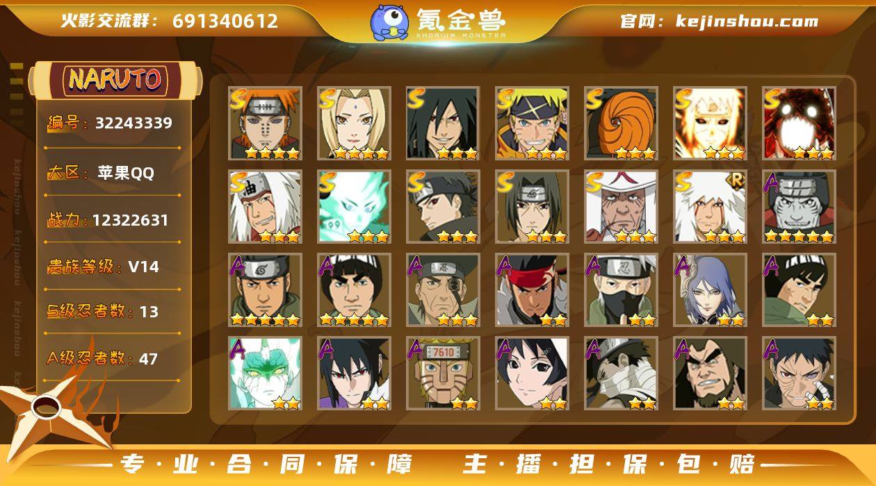 实名:不可二次实名 贵族等级:V14 战力值:12322631 S忍数:13 A忍数:47 四星佩恩「天道」,四星纲手,三星宇智波斑「神驹佑将」,三星漩涡鸣人·宇智波佐助,三星宇智波斑「五影会谈」,三星波风水门「九喇嘛连结」,三星漩涡鸣人「暴怒·第六尾」,三星自来也「传说中的三忍」,三星大筒木舍人「最终章」,三星宇智波止水「须佐能乎」,三星宇智波鼬「须佐能乎」,三星猿飞日斩,三星自来也「舞之豪杰」 五星干柿鬼鲛,五星猿飞阿斯玛,五星迈特凯,三星土台「忍界大战」,二星猿飞阿斯玛「神驹佑将」,二星旗木卡卡西「神威对决」,二星小南「神驹佑将」,二星迈特凯「青春爆炸」,二星巳月「仙人模式」,二星宇智波佐助「侠隐江湖」,二星机械鸣人「初始形态」,二星黑土「夏日限定」,二星桃地再不斩「秽土转生」,二星神农「羁绊」,二星宇智波带土「漂泊浪客」,二星宇智波泉奈,二星不动,二星大蛇丸「新春限定」,二星黑绝,二星角都「秽土转生」,二星药师兜「侠隐江湖」,二星宇智波鼬「夏日限定」,二星小南「漂泊浪客」,二星我爱罗「新春限定」,二星纲手「侠隐江湖」,二星佩恩·六道「漂泊浪客」,二星照美冥「侠隐江湖」,二星达鲁伊「五代目雷影」,二星神秘面具男「忍者之路」,二星旗木卡卡西「元气夏日」,二星千手扉间「漂泊武士」,二星宇智波止水「新春限定」,二星宇智波佐助「须佐能乎」,二星桃地再不斩「漂泊武士」,二星小南「新春限定」,二星宇智波带土「暴怒」,二星宇智波鼬「新春限定」,二星小南「夏日泳装」,二星秋道丁次「忍界大战」,二星波风水门「新春限定」,二星飞段「死司凭血」,二星飞段,二星迪达拉,二星蝎,二星宇智波鼬,二星旗木卡卡西,二星卑留呼「火之意志继承者」 卖家说:超哥94片