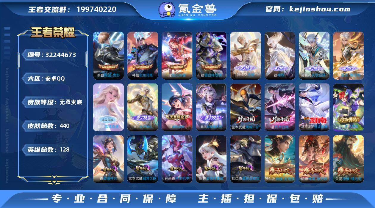 可换绑【无双V11精品号·流光积分6万·马年全套·赵云全皮·李白全皮·孙悟空铠诸葛亮曜甄姬韩信李白瑶8无双·4珍品怪盗基德·贵族积分25万】11戳戳 6星传说 1天幕 55按键 7王者印记 五级铭文120 可二次CD18175 安卓Q-V11-440皮肤-4典藏皮肤-8无双-4珍品传说-71传说-142史诗【英雄全皮】:廉颇全皮,赵云全皮,刘禅全皮,元歌全皮,李白全皮,司马懿全皮,孙权全皮,百里玄策全皮,敖隐全皮,澜全皮,夏洛特全皮,司空震全皮,暃全皮,莱西奥全皮,空空儿全皮,影全皮,海诺全皮【荣耀典藏】:李白鸣剑曳影,铠银白咏叹调,韩信弑枪猎影,瑶拾光映像【无双皮肤】:孙悟空无相,铠神罪,诸葛亮天机白泽,曜器灵螭龙剑,甄姬雪境奇遇,韩信群星魔术团,李白碎月剑心,瑶真我赫兹【珍品传说】:宫本武藏黑崎一护,暃朽木白哉,孙策时之奇旅,马可波罗怪盗基德【星元皮肤】:镜破晓神光,狄仁杰星际治安官,刘备时之思念,孙尚香未来机甲,宫本武藏幽冥之眼,貂蝉金色仲夏夜【天幕】:狸尾假日天幕【传说皮肤】:云缨神骥越千峰,关羽神骥镇沧海,朵莉亚神骥鸣幻洲,狄仁杰神骥赴朔漠,貂蝉神骥聚万邦,马超神骥逐星野,杨戬纵目迁山,后羿神树通天,曹操万灵伏威,干将莫邪千山共赴,元歌诡秘之主,大司命死亡执政官,司马懿九山相柳,公孙离云诺千山,司空震愿照山河定,澜愿照九州拓,裴擒虎祥瑞亨通,嬴政玄雷天君,桑启鸣野蒿,亚连落雪白狼,赵云乘龙铭钟鼎,澜逐花归海,艾琳觅芳踪,露娜霜月吟,大乔时之奇旅,宫本武藏惊梅引,马可波罗妄想实况,东皇太一灼幽烈阳,诸葛亮鹤羽星尊,澜电玩雷克斯,夏洛特浮生妄,花木兰燃星之曲,伽罗炽翼辉光,小乔山海琳琅生,曜山海苍雷引,李信山海炽霜斩,吕布怒海麟威,李白诗剑行,百里守约碎云,马可波罗深海之息,马超无双飞将,孙策挚爱之约,露娜启示之音,孙策末日机甲...