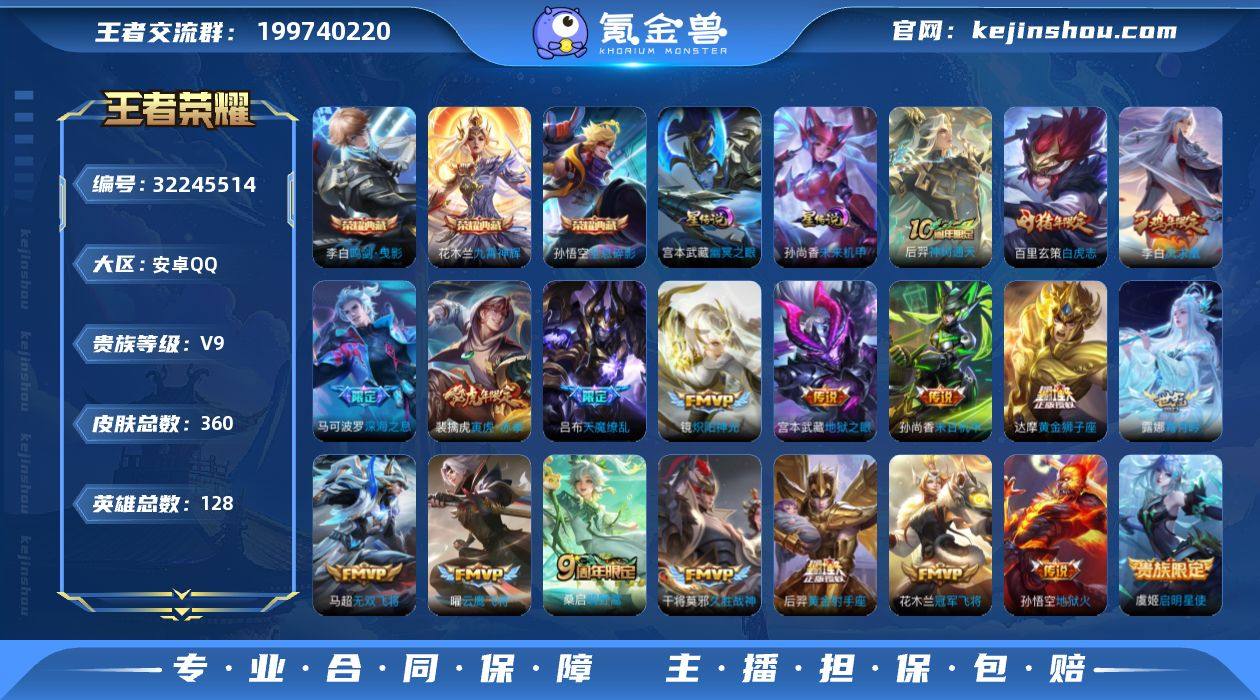 可换绑【V9精品号·打野44段·金标百里玄策1.2万·梅西·花木兰李白孙悟空3典藏·白虎志·凤求凰·天魔缭乱·天机无算天幕】13按键 1天幕 2星传说,32王者印记,满级铭文 可二次KK9678 安卓Q-V9-360皮肤-3典藏皮肤-19传说-102史诗【英雄全皮】:孙权全皮【荣耀典藏】:孙悟空全息碎影,李白鸣剑曳影,花木兰九霄神辉【星元皮肤】:孙尚香未来机甲,宫本武藏幽冥之眼【传说皮肤】:后羿神树通天,桑启鸣野蒿,露娜霜月吟,马可波罗深海之息,马超无双飞将,裴擒虎寅虎赤拳,镜炽阳神光,虞姬启明星使,曜云鹰飞将,干将莫邪久胜战神,达摩黄金狮子座,百里玄策白虎志,花木兰冠军飞将,后羿黄金射手座,李白凤求凰,孙尚香末日机甲,宫本武藏地狱之眼,孙悟空地狱火,吕布天魔缭乱【限定皮肤】:白起狰,姜子牙天穹之誓,李白谪仙醉月,狄仁杰阴阳师,虞姬凯尔特女王,赵云皇家上将,赵云引擎之心,墨子神迹守卫,嬴政优雅恋人,嬴政白昼王子,鲁班七号狮舞东方,庄周蜃楼王,高渐离死亡摇滚,阿轲迷踪丽影,钟无艳王者之锤,孙膑妖精王,扁鹊炼金王,白起夜都怪侠,芈月重明,芈月幻夜卜梦,吕布天魔缭乱,吕布猎兽之王,周瑜赤莲之焰,夏侯惇朔风刀,甄姬游园惊梦,曹操烛龙,典韦穷奇,典韦蓝屏警告,马可波罗逐梦之星,马可波罗暗影游猎,马可波罗深海之息,狄仁杰魔术师,狄仁杰万华元夜,达摩星际陆战队,达摩沙漠行僧,项羽海滩派对,老夫子醍醐杖,老夫子航海奇遇记,关羽冰锋战神,程咬金演武夺筹,露娜一生所爱,刘邦夺宝奇兵,韩信逐梦之影,韩信飞衡,韩信傲雪梅枪,王昭君午后时光,兰陵王驯魔猎人,兰陵王金庭之子,花木兰青春决赛季,亚瑟狮心王,孙悟空至尊宝,孙悟空大圣娶亲,牛魔御旌,李元芳银河之约,李元芳云中旅人,虞姬启明星使,钟馗神迹守卫,钟馗驱傩正仪,杨玉环遇见飞天,女娲朔望之晖,干将...