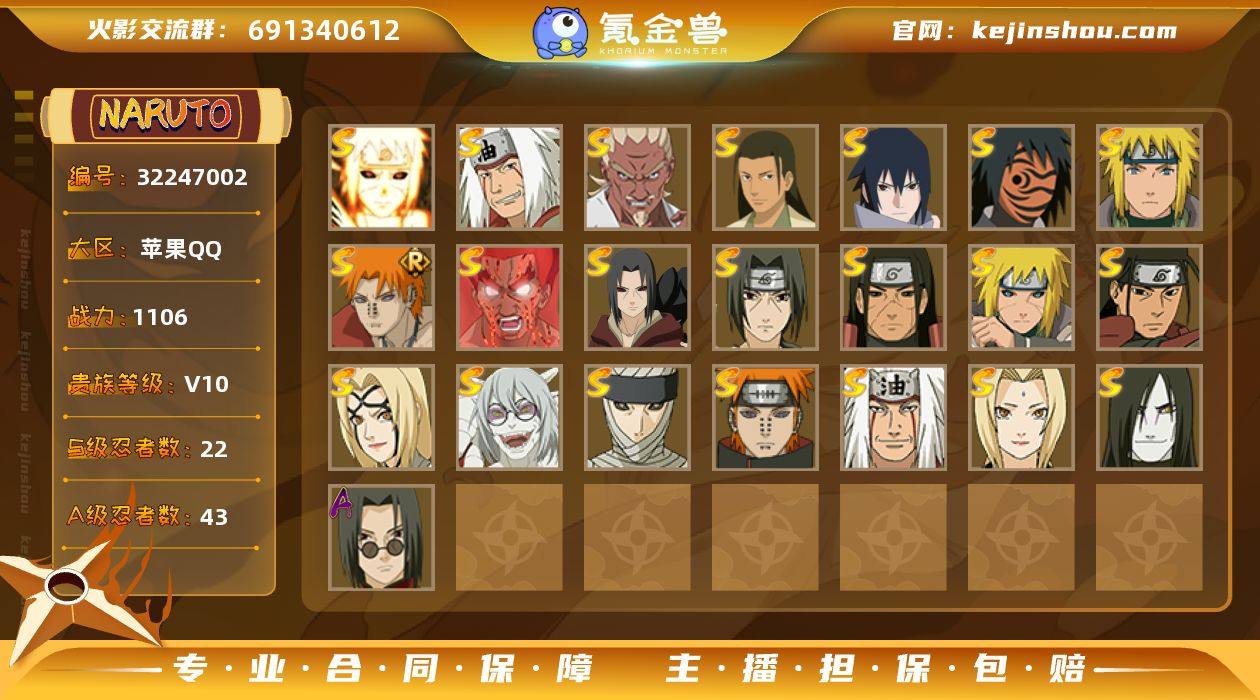 MHY4014【天道超V10 1039区 22S 43A 18通灵】无二次包【区服】苹果Q1039【等级】149【S级数量】22【A级数量】43【B级数量】87【C级数量】56【S级】千手柱间 佩恩·天道「超」 波风水门「秽土转生」 自来也「舞之豪杰」 佩恩「天道」 宇智波鼬「秽土转生」 神秘面具男「红夜之刃」 药师兜「仙人模式」 纲手「百豪」 宇智波佐助「永恒万花筒」 无「二代目土影」 宇智波鼬「须佐能乎」 千手扉间「秽土转生」 艾「忍界大战」 迈特凯「死门」 大蛇丸 波风水门 千手柱间「秽土转生」 纲手 波风水门「九喇嘛连结」 漩涡鸣人·宇智波佐助 自来也「传说中的三忍」【A级】宇智波佐助「万花筒写轮眼」 飞段 药师兜「半蛇斗篷」 宇智波鼬「新春限定」 我爱罗「疾风传」 宇智波鼬 蝎「绯流琥」 大野木「侠隐江湖」 桃地再不斩「秽土转生」 迈特凯 蝎 黑土「四代目土影」 旗木卡卡西「幻之真容」 波风水门「青年」 飞段「死司凭血」 土台「忍界大战」 宇智波泉奈 达鲁伊「五代目雷影」 长门「青年」 秋道丁次「忍界大战」 漩涡鸣人「九尾查克拉」 旗木卡卡西「万花筒写轮眼」 李洛克「忍界大战」 旗木卡卡西「忍界大战」 漩涡博人「桃式显现」 加藤断 漩涡鸣人「仙人模式」 千代「近松十人卫」 长十郎「六代目水影」 猿飞阿斯玛 猿飞木叶丸 不风 宇智波佐助「须佐能乎」 干柿鬼鲛 艾「青年」 巳月「仙人模式」 日向宁次「忍界大战」 大蛇丸「晓」 日向雏田「最终章」 奇拉比「忍界大战」 迈特凯「青春爆炸」 小南「神驹佑将」 我爱罗「忍界大战」【B级】宇智波带土「少年」 山中井野「疾风传」 佩恩「人间道」 天天「疾风传」 御手洗红豆「新春限定」 我爱罗「凭依体」 大和「暗部」 佩恩「畜生道」 大蛇丸「木叶三忍」 日向花火「武当宗师」 宇智波鼬「暗部」 宇智波佐助「忍者之路」 惠比寿 宇智波鼬「红夜之刃」 佐井「忍界...