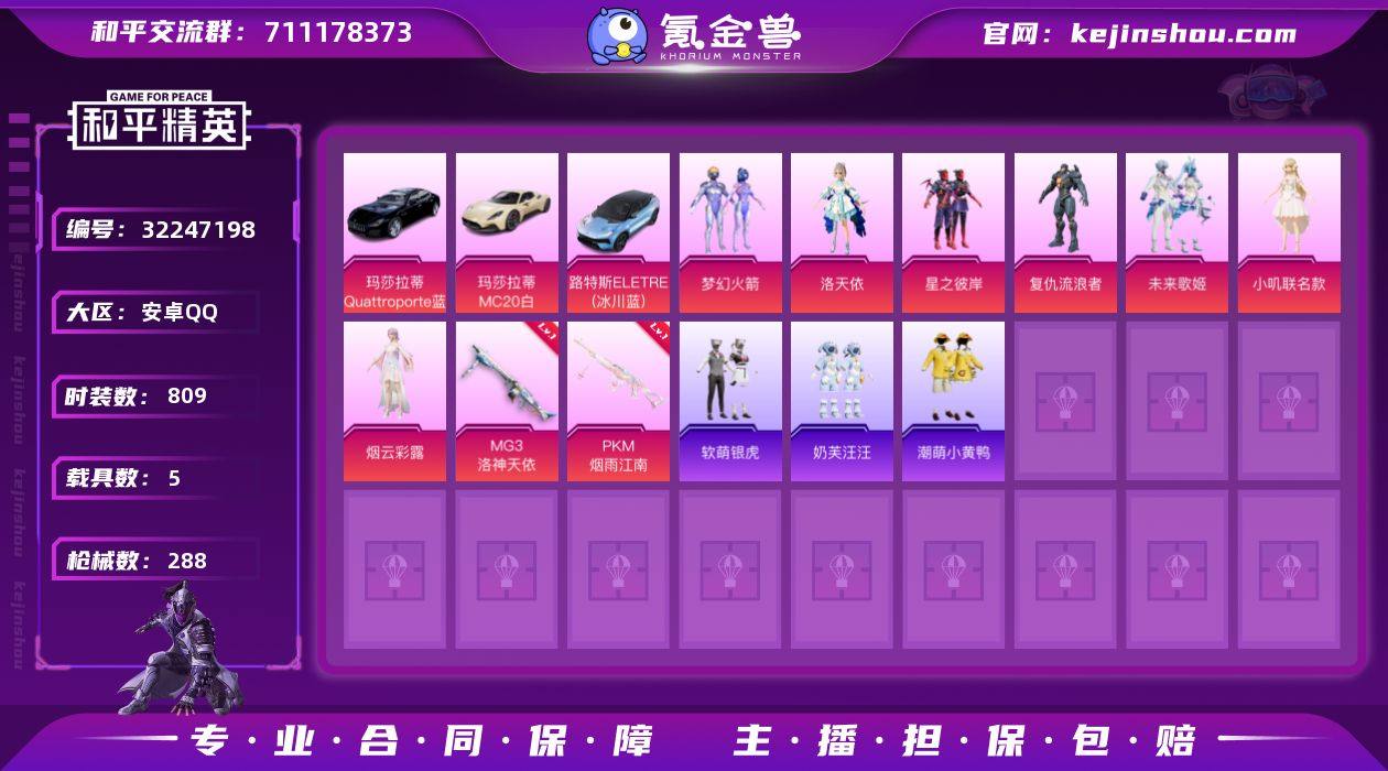 11粉装 7特效枪 5载具 16印记 可二次 可修改实名