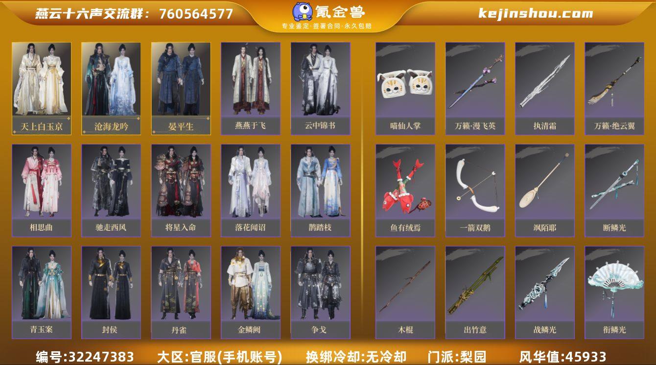 账号有几款限定时装,还有两个八音窍,其中一个可以出售