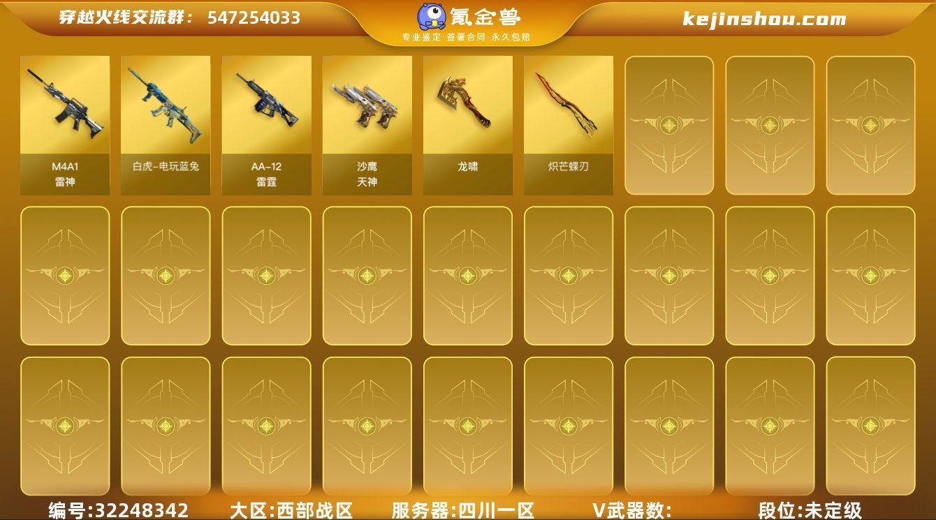 [17518938]8348/西部/四川一区/可排位/20v/无幻神/FAASG2天戎/白虎电玩蓝兔/雷神/机械迷城穹宇/朱雀电竞之星/天罚斗烈龙驹/屠龙斗烈龙驹/炼狱百战金芒/柯尔特百战金芒/炽芒蝶刃/【角色】/不败狙神/零纪元/斗烈龙骑/幻面灵狐/葵阿尔法武装/乔伊教练/【音效卡/炼狱百战金芒庆典舞曲音效卡/朱雀电竞之星竞星跃动音效卡/竞魂超新星音效/屠龙斗烈龙驹斗烈音效卡/屠龙电竞之星竞星跃动音效卡/碧霄极光音效卡/天罚斗烈龙驹斗烈音效卡/】/【枪皮】/雷神紫凛/龙啸幻灵之啸/金色蔷薇电竞之星/幻神电竞之星/火麒麟斗烈龙驹/【小人枪/火麒麟零纪元/*2/水枪不败狙神/COP太空指挥官/】/永久AC/有过十年记录/找回包赔