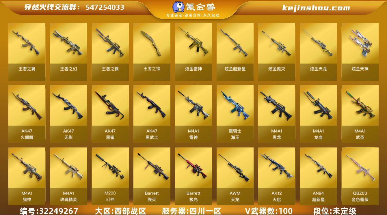 ABC11005/西部/四川一区/钱包注销/可排位/掌火ID:772971228/100V/幻神/雷霆套/5炼狱/4修罗/QBZ金色蔷薇/天龙/毁灭/极光/雷神/火麒麟/黑龙/【四防未开】/关小雨/【角色】/葵/瞳/炫/零纪元/战地猎狐/葵阿尔法武装/修道士/雪域霜狐/【音效卡】/毁灭音效卡/雷神音效卡/炼狱百战金芒音效卡/永久AC/细节看图