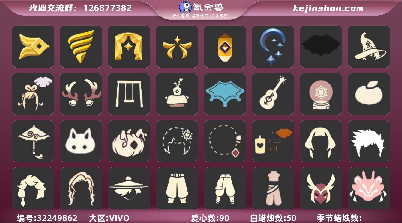 账号类型: 手机账号 季节已毕业: 风行季,潜海季,表演季,欧若拉季,夜行季,追忆季 完成地图: 雨林,霞谷,暮土,禁阁 珍稀物品: 白枭,透明蝶翼斗 礼包: 蝙蝠套,巫师,绊爱,鹿角,秋千,茶桌,瑞雪,吉他,雪花球,橘子,红伞,兔子,南瓜,雪花,彩虹耳钉,创始人 裤子: 武士裤,搓澡巾,蓝绿裤 面具: 呼吸面具,夜行毕业面具,黄眉企鹅面具 面饰: 红耳机 项链: 围巾 发型: 若笠,虚荣,单侧绑发,小王子发型,留辫蘑菇头 头饰: 羽毛发饰,蓝色音乐会,平顶帽 斗篷: 海洋斗,粉红绒毛斗篷,燕尾斗篷 配饰: 雨伞,高音钢琴,鲲灯 亮点: 【优质装备】:表演季,白枭(帝企鹅发),武士裤,风行季,潜海季,透明蝶翼斗,欧若拉季(欧若拉),羽毛发饰(多羽发饰),高音钢琴(白色高脚钢琴),夜行季,追忆季,蓝绿裤(高领舞服),围巾(肩带),呼吸面具(潜水面具),夜行毕业面具(棕熊面具),黄眉企鹅面具,单侧绑发(单边小辫),小王子发型,留辫蘑菇头,粉红绒毛斗篷(绒毛斗篷),燕尾斗篷,鲲灯(追忆之书),蝙蝠套(蝙蝠斗篷)(南瓜头),绊爱(绊爱斗篷)(绊爱礼包),秋千(情人秋千),茶桌(花憩茶桌),红耳机,鹿角(圣诞鹿角),瑞雪(瑞雪斗篷)(暖冬瑞雪),吉他(音韵吉他)(白吉他),红伞(瑞气纸伞),巫师(巫师帽),雪花球(雪花水晶球),雨林,霞谷,墓土(暮土),禁阁,若笠(箬笠),创始人(创始人斗篷),兔子(玉兔头饰)(玉兔发饰)(兔子发饰),彩虹耳钉(彩虹耳饰),南瓜(冥龙南瓜),雪花(雪花发夹),橘子(大橘大利)