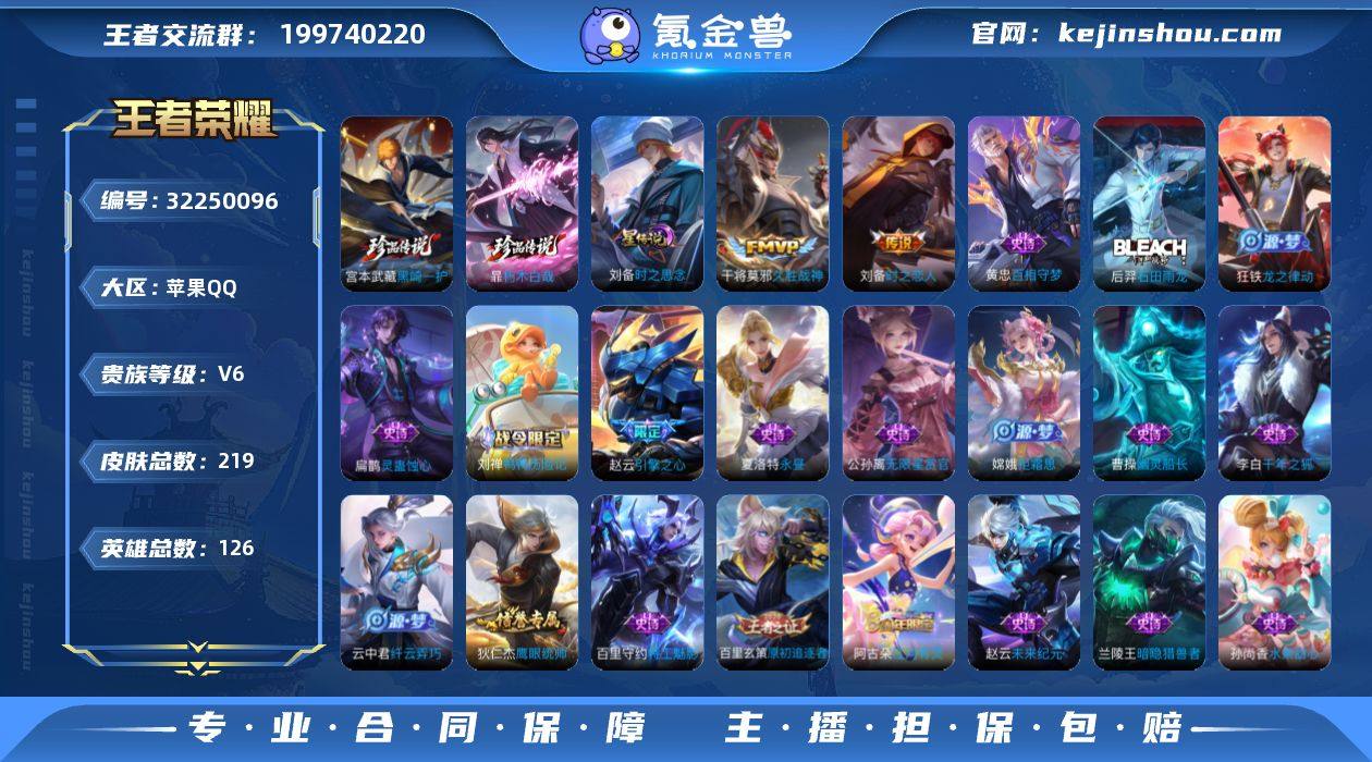 .3万战诸葛亮·1.2万战金标老虎·1.1万战兰陵王·准万战金标娜可露露·金标司空震·黑崎一护·朽木白哉·时之思念·寅虎赤拳·时雨天司·青龙志·引擎之心·黄忠百相守梦·美猴王·可二次】w18601-苹果Q-126英雄-219皮肤-9王者印记-270铭文-贵族积分1w【贵族6】【2珍品·1星传说·5传说·1天幕·5按键·221幸运值】【因赛季更新游戏段付以上号为准!】 【珍品传说】:宫本武藏黑崎一护,暃朽木白哉 【星元皮肤】:刘备时之思念 【天幕】:共赏芳华天幕 【内测皮肤】:孙尚香蔷薇恋人,高渐离玩趣恶龙,狂铁特工战影,干将莫邪胡桃夹子 【传说皮肤】:桑启鸣野蒿,裴擒虎寅虎赤拳,诸葛亮时雨天司,刘备时之恋人,干将莫邪久胜战神 【限定皮肤】:白起狰,姜子牙天穹之誓,狄仁杰阴阳师,赵云皇家上将,赵云引擎之心,孙尚香蔷薇恋人,鲁班七号狮舞东方,庄周高山流水,高渐离玩趣恶龙,芈月重明,元歌无心,典韦穷奇,狄仁杰魔术师,狄仁杰万华元夜,达摩沙漠行僧,项羽海滩派对,老夫子醍醐杖,程咬金演武夺筹,兰陵王金庭之子,孙悟空美猴王,李元芳云中旅人,钟馗神迹守卫,干将莫邪胡桃夹子,雅典娜单词大作战,雅典娜黎明之约,鬼谷子原初探秘者,鬼谷子五谷丰年,诸葛亮时雨天司,铠青龙志,苏烈千军破阵,百里玄策原初追逐者,弈星混沌棋,沈梦溪大漠名商,明世隐疑决卦,裴擒虎李小龙,裴擒虎寅虎赤拳,裴擒虎擒涛扼浪,云中君纤云弄巧,盾山御銮,猪八戒猪悟能,上官婉儿梁祝,嫦娥拒霜思,蒙犽狂想玩偶喵,鲁班大师探海日志,桑启海盐诗旅,阿古朵江河有灵,张良古海寻踪,鬼谷子天穹祈灯,刘邦剑破天穹,芈月浮光幕影 【年限皮肤】:孙悟空美猴王,铠青龙志,诸葛亮时雨天司,裴擒虎寅虎赤拳 【赛季限定】:白起狰,芈月重明,典韦穷奇,盾山御銮,弈星混沌棋,明世隐疑决卦,老夫子醍醐杖,鬼谷子原初探秘者,狄仁杰万华元...