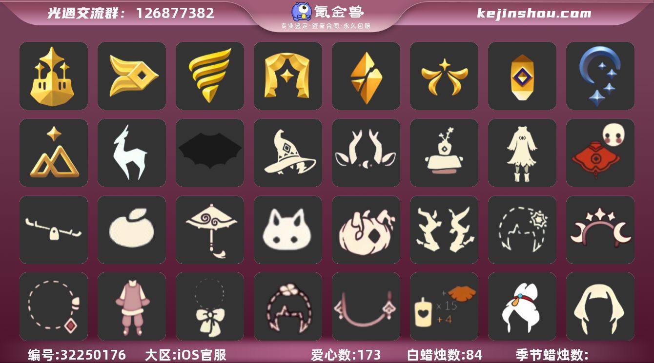 账号类型: 手机账号 季节已毕业: 梦想季,风行季,潜海季,表演季,破晓季,欧若拉季,夜行季,追忆季,拾光季,九色鹿季 完成地图: 晨岛,云野,雨林,霞谷,暮土,禁阁 珍稀物品: 白枭,透明蝶翼斗 礼包: 蝙蝠套,巫师,九色鹿角,茶桌,女巫裙,福娃,跷跷板,橘子,红伞,兔子,南瓜,枯角,雪花,星月头饰,彩虹耳钉,新年裤,蝴蝶结,四叶草,新年耳钉,创始人 裤子: 武士裤,背带裤,搓澡巾,蓝绿裤,飞天裤 面具: 凤凰面具,贴花面具,呼吸面具,夜行毕业面具,黄眉企鹅面具 面饰: 红耳机,黑框眼镜 项链: 围巾 发型: 归巢毕业发型,若笠,虚荣,单侧绑发,留辫蘑菇头,飞天盘发 头饰: 羽毛发饰,牛仔帽,蓝色音乐会,平顶帽 斗篷: 蟑螂斗,绿芽,粉红绒毛斗篷,遥鲲斗篷,燕尾斗篷,冥龙斗篷 配饰: 雨伞,高音钢琴,相机,鲲灯 亮点: 【优质装备】:表演季,白枭(帝企鹅发),武士裤,梦想季,风行季,潜海季,破晓季,透明蝶翼斗,欧若拉季(欧若拉),归巢毕业发型(五塑彩羽发),羽毛发饰(多羽发饰),高音钢琴(白色高脚钢琴),夜行季,追忆季,牛仔帽(西部帽),相机(季卡相机),拾光季,九色鹿(九色鹿季),蓝绿裤(高领舞服),飞天裤(柔缎花边连)(九色鹿丝带裤),蟑螂斗(凤凰斗篷),围巾(肩带),蝙蝠套(蝙蝠斗篷)(南瓜头),红耳机,巫师(巫师帽),晨岛,云野,雨林,霞谷,墓土(暮土),禁阁,若笠(箬笠),凤凰面具,贴花面具(丛林黑面具),呼吸面具(潜水面具),夜行毕业面具(棕熊面具),黄眉企鹅面具,黑框眼镜(粗框眼镜),单侧绑发(单边小辫),留辫蘑菇头,粉红绒毛斗篷(绒毛斗篷),遥鲲斗篷(双翼遥鲲斗),燕尾斗篷,冥龙斗篷,鲲灯(追忆之书),飞天盘发(九色鹿丸子头),福娃(福娃礼包)(春之日礼包)(铜钱斗),茶桌(花憩茶桌),跷跷板(情人跷跷板),九色鹿角(神鹿祝福头饰)(神鹿祝福礼包),红伞(瑞气纸伞),女巫裙,枯角(巫树犄角),新年裤(瑞气服饰),星月头饰(星月头冠),蝴蝶结(大蝴蝶结),创始人(创始人斗篷),兔子(玉兔头饰)(...