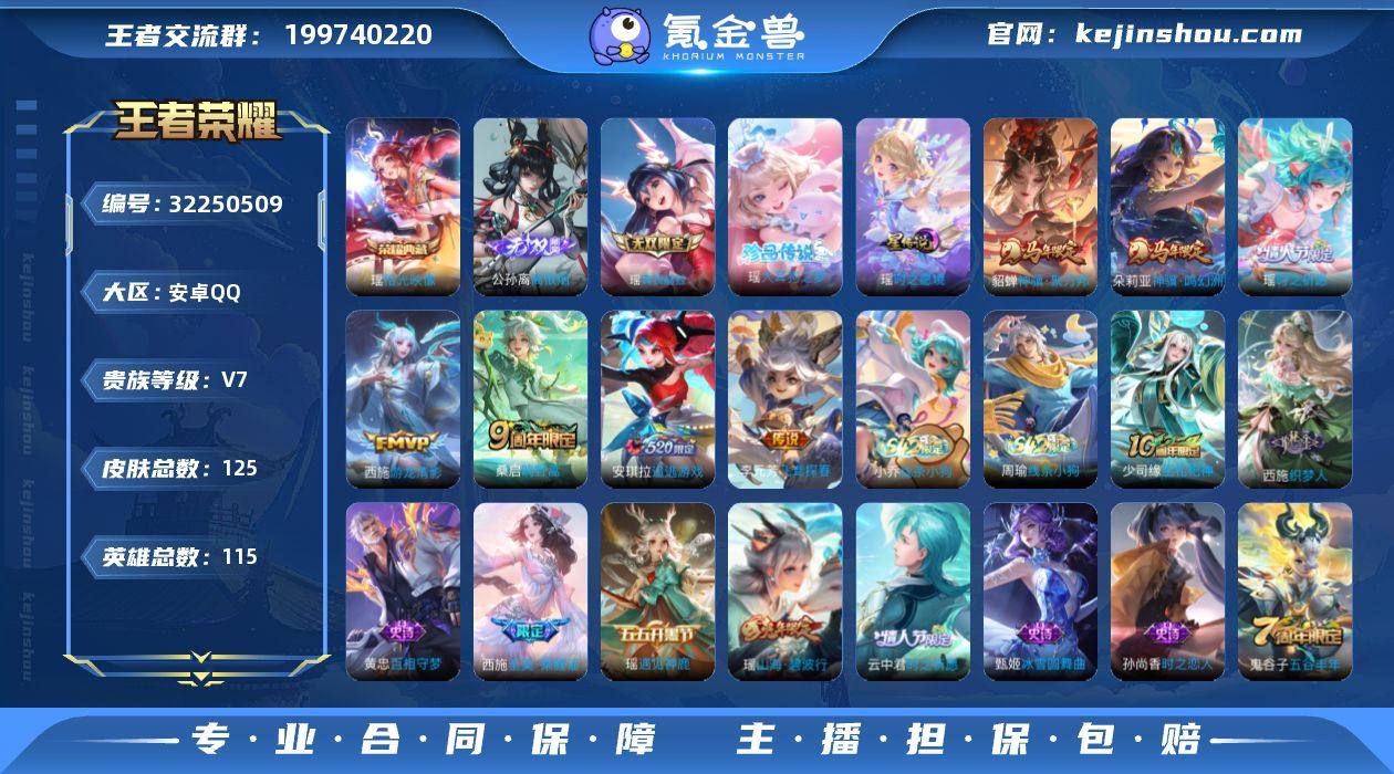 【全皮瑶瑶带紫瑶,西施伪全皮,公孙离无双,v7女号,1水2无双1珍品7传说1星传说,大耳朵狗,朵朵貂蝉马限,妲己美乐蒂,小乔kt限定,15套按键,1赛季药水,1改名卡】贵族7 荣耀典藏1 无双2 珍品传说1 星传说1 传说皮肤7 史诗皮肤35 皮肤数量125 皮肤价值:107660 英雄115 永恒钻石III 总场次2827