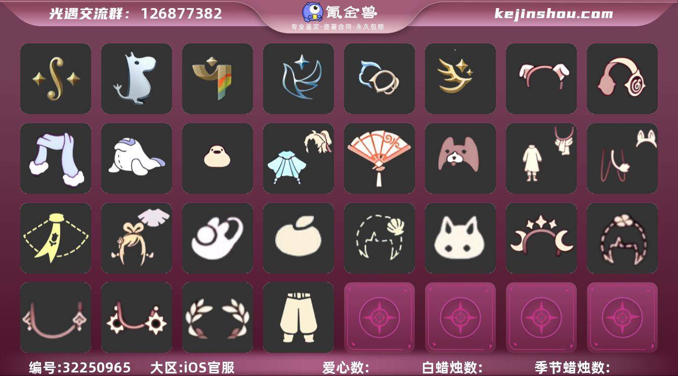 账号类型: 手机账号 季节已毕业: 二重奏季,姆明季,彩染季,青鸟季,双星季,迁徙季 完成地图: 晨岛,云野,霞谷 礼包: 围巾,绊爱,兔子鞋,橘子,贝壳,兔子,星月头饰,四叶草,新年耳钉,日光耳环,锦标赛桂冠,姆明饰品套装,史力奇套装,献瑞折扇礼包,小狗周年发饰,青衫落拓礼包,小黄鸭发饰礼包,海牛玩偶礼包,冬日围巾斗篷,云音伴游耳机,绿茸茸卷耳发饰礼包 裤子: 武士裤