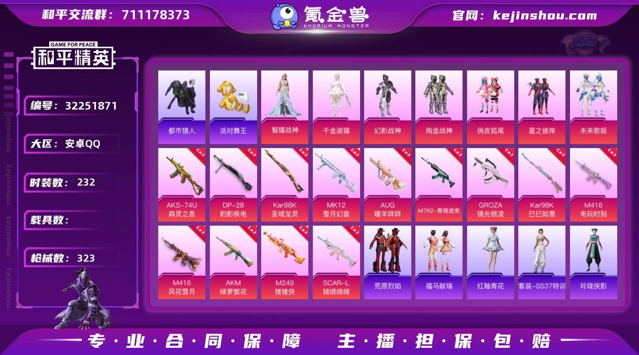 【金鞋都市男神暗夜之虎绚金战神满级M4风花雪月15特效枪8粉装猫包素材号 秒换绑不用等】 安卓Q区-103714热力值-232套装-323枪皮 【7稀有】 都市猎人 派对舞王(金靴子) 派对舞王 暗夜之虎 百万伏待背包(猫包) 奇异狩猎者 Mark.06蓝螳螂【8粉装】 绚金战神 圣堂之誓 星之彼岸 未来歌姬 幻影战神 俏皮狐尾 角色-智耀战神 角色-千金淑猫【15特效枪】 Kar98K-圣域龙灵(3级) M416-风花雪月(7级) AKS-74U-森灵之息(4级) Mk14-福马献瑞(5级) ACE32-萌骑漫游(4级) SCAR-L-锦绣绵绵(5级) M249-猪猪侠(7级) AKM-绿萝繁花(5级) M762-青锋波束(5级) MK12-雪月幻音(5级) Kar98K-巳巳如意(5级) AUG-暖羊咩咩(5级) M416-电玩时刻(5级) GROZA-镜光银凌(5级) DP-28-豹影疾电(5级)【312热门】 浪漫天命 鹰眼刺客 破蛋小黄鸡 迅捷狂鲨 深海小丑鱼 金羽特工 暗影哥特(红眼罩) 团圆交子 瑞龙福将 狂沙舞者 白色伏地魔 SS27特训 SS26特训 SS25特训 SS24特训 SS23特训 SS22特训 M24-未来战士 AWM-雷霆特警 AKM-环太平洋 SCAR-L-玉兔迎春 GROZA-田园牧歌 AUG-幻影战神 M762-天降萌叽 M762-彩虹符号 Mk47-乌木金纹 SKS-糯团青竹 UZI-娇憨猪猪 DBS-彩虹符号 M249-彩虹符号 MG3-幻世战舞者 AKM-虎虎生威 AKM-霓虹街区 M416-蓝色火焰 GROZA-异彩先驱 M762-快乐主宰 长空猛禽 异彩先驱 虚音幻奏 夏日倾情 甜心亚梦 甜蜜熊情侣 特训学院 燃烧卡路里 青涩时光 青年教官 牛气冲天 霓虹街区 霓虹极客 妙红点点 懵萌河马 魅力单车 六六大吉 蓝色运动 坚韧舞者 黄色运动 漫步者 黄色伏地魔 红色运动 黑色伏地魔 和煦暖阳 海岛探路者 纯真浪花 春日漫步 粉红小猪 暗夜之虎 M762-瑞龙福将 M762-奇异狩猎者 汤姆逊-智耀战神 S