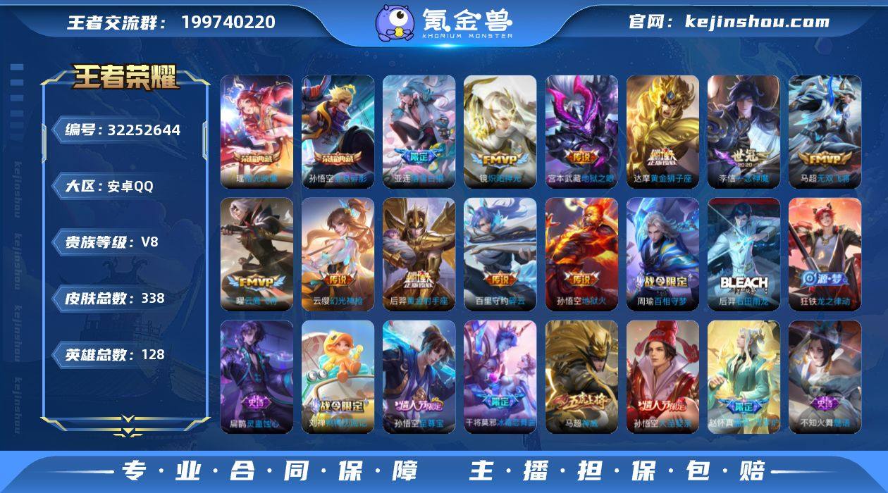 V8 2典藏 1珍品传说 23传说 127英雄 331皮肤 可修改实名 男号 【英雄全皮】马超全皮,司空震全皮,元歌全皮,敖隐全皮,空空儿全皮,孙权全皮,蚩奼全皮,亚连全皮,影全皮,大禹全皮 【稀有英雄】敖隐(小龙人),大司命,韩信(韩跳跳),夏洛特(夏师傅),艾琳,橘右京(橘子),娜可露露(鸟人),不知火舞,赵云,金蝉(唐僧),戈娅 【荣耀水晶】拾光映像(瑶典藏),全息碎影(猴子典藏) 【珍品传说】酷洛米之心 【传说皮】琥珀纪元马超,落雪白狼,幻光神枪,神树通天,诡秘之主,黄金狮子座,黄金射手座,地狱之眼,末日机甲-孙尚香(绿蚂蚱),一念神魔,云鹰飞将(小将军),炽阳神光,无双飞将,音你心动-周瑜,时之恋人-刘备(电焊工),碎云,澜逐花归海 【珍宝阁皮】妄想食味,蔷薇恋人 【赛季/战令皮】噬灭天穹(s37),古海寻踪(s33),星界游侠,擒涛扼浪(s31),潮玩骑兵,探海日志(s32),玲珑珍味,流音漫舞,地狱燃心,剑破天穹(s35),天穹祈灯(s34),青焰无极,苍威无极,天穹之誓(s36),蔡文姬夏日便利店,虞姬夏日便利店,醍醐杖(s20),原初探秘者(s21),万华元夜(s22),演武夺筹(s23),蓝屏警告,银河之约,西部大镖客-猪八戒,暗影游猎(游乐娃子),单词大作战,狂想玩偶喵,潮玩骑士王,云间偶戏,沙漠行僧(s26),金庭之子(s27),大漠名商(s28),...